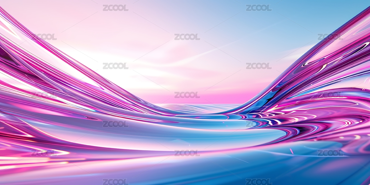 蓝色紫色渐变透明玻璃曲线背景3D渲染