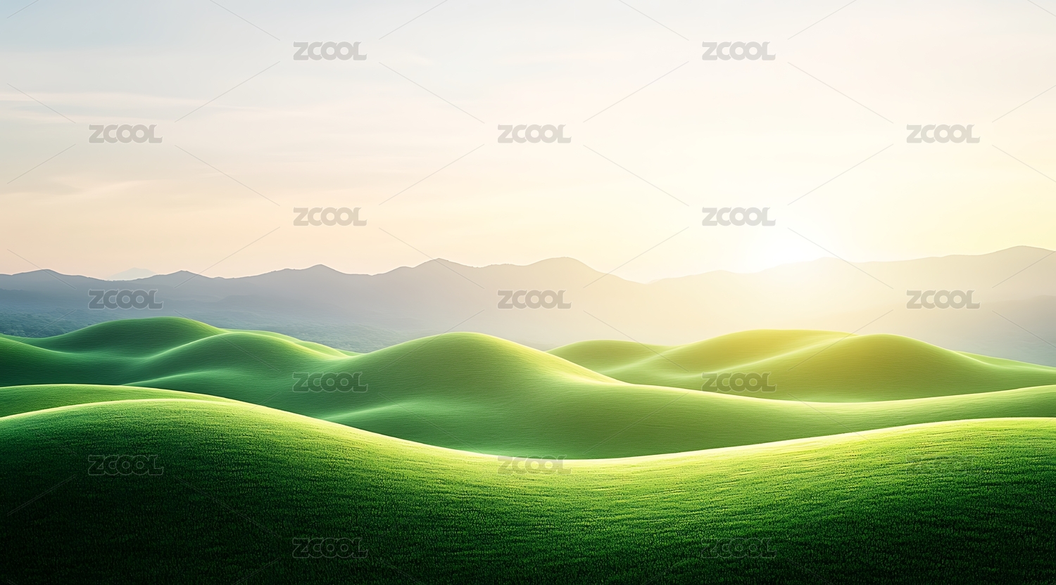 绿色丘陵柔和晨光
