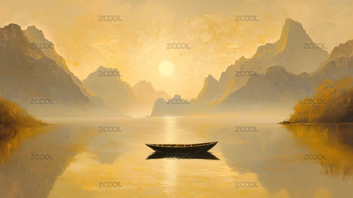 金色山湖静谧之舟