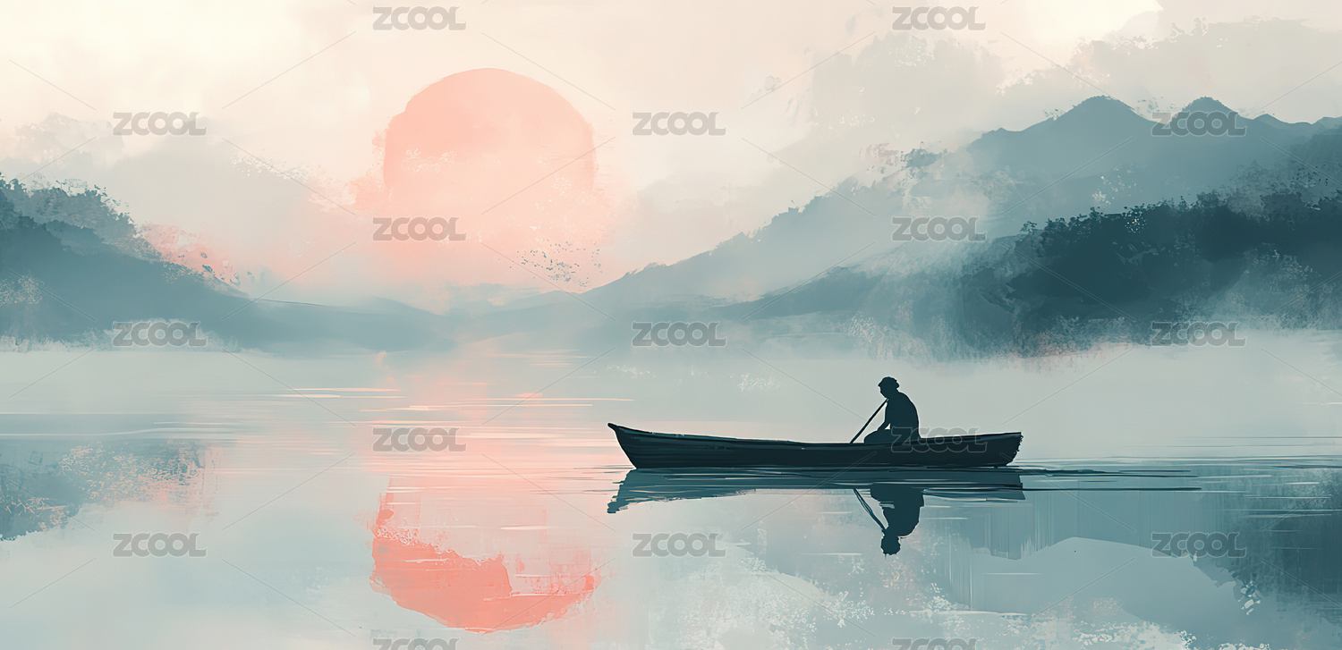日落时分的孤舟垂钓