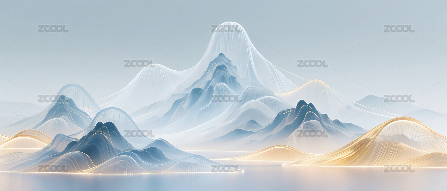 抽象蓝色意境山水装饰画中国风写意山水背景