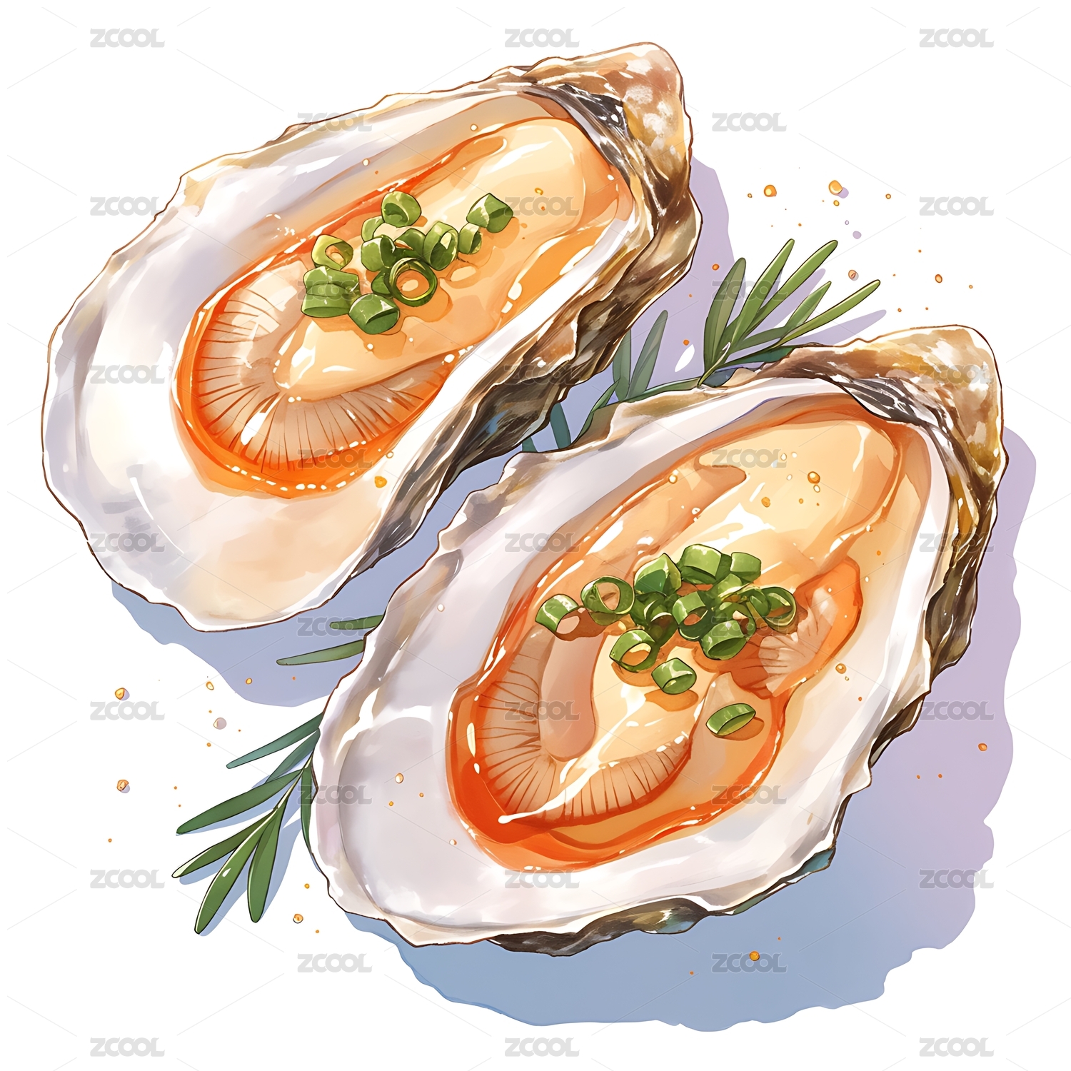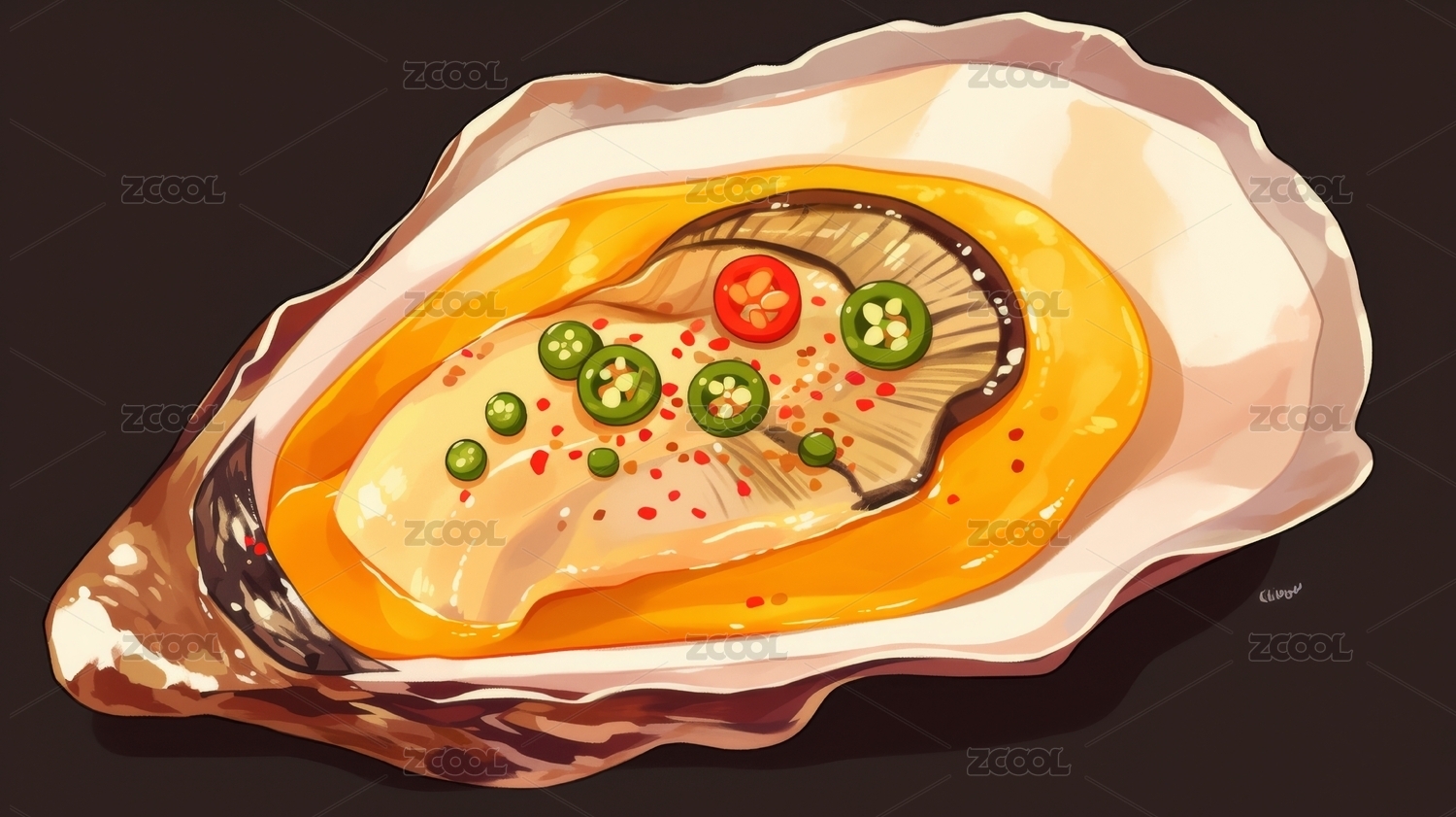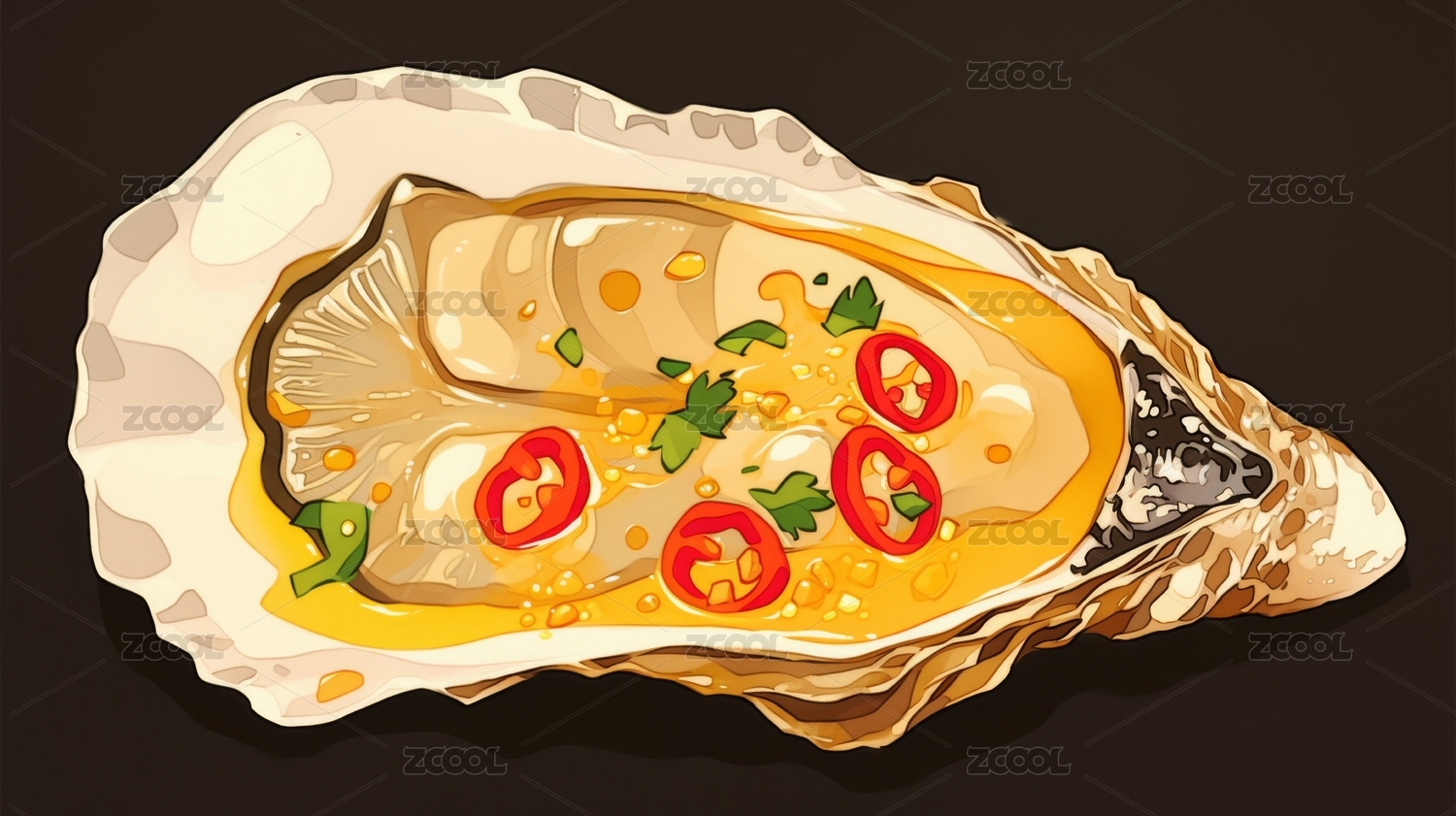 卡通,插画,贝壳,特写,高清,生蚝,海鲜,食物,美食,美味