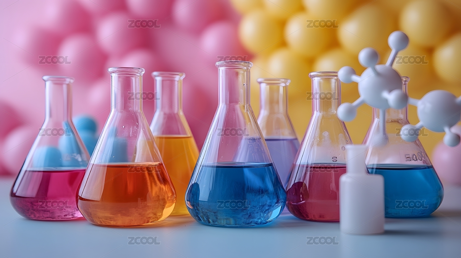 彩色烧杯和分子模型