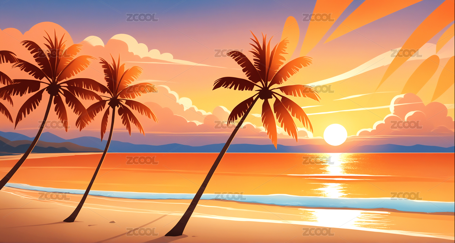 浪漫,阳光,景色,天空,椰树,云朵,夕阳,沙滩,海浪,海边