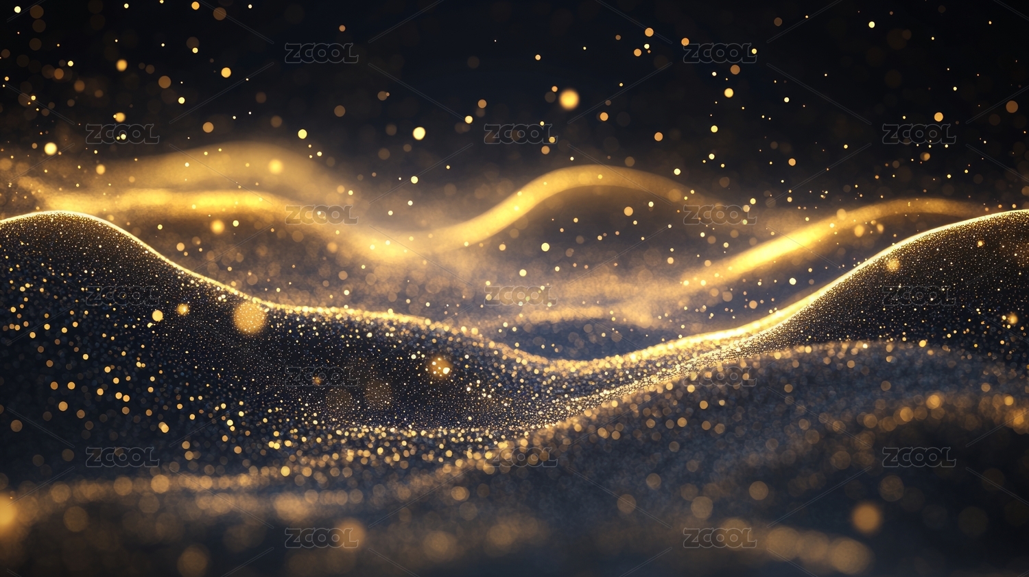 波浪, 光点, 背景,梦幻,粒子, 金色, 蓝色, 抽象,闪耀