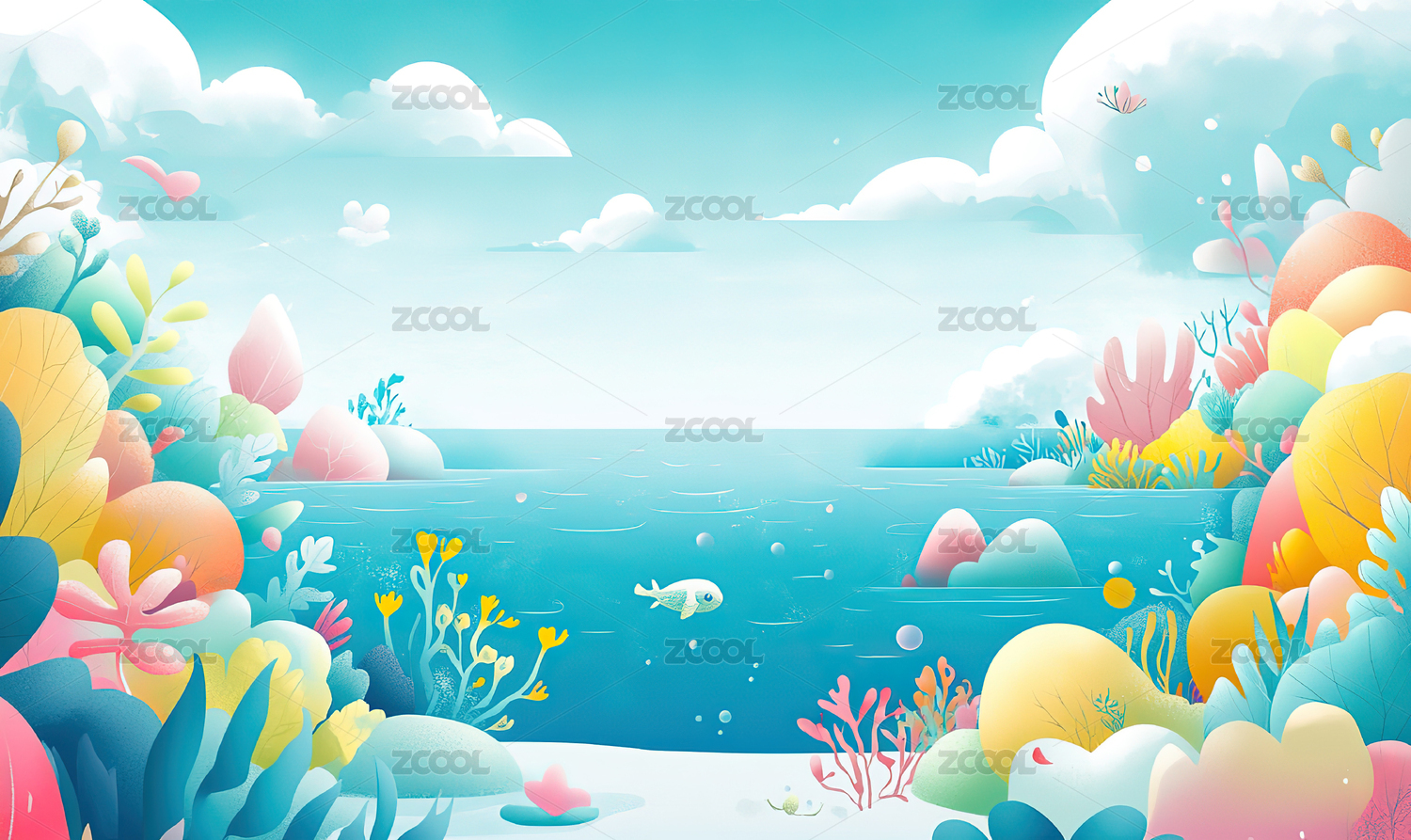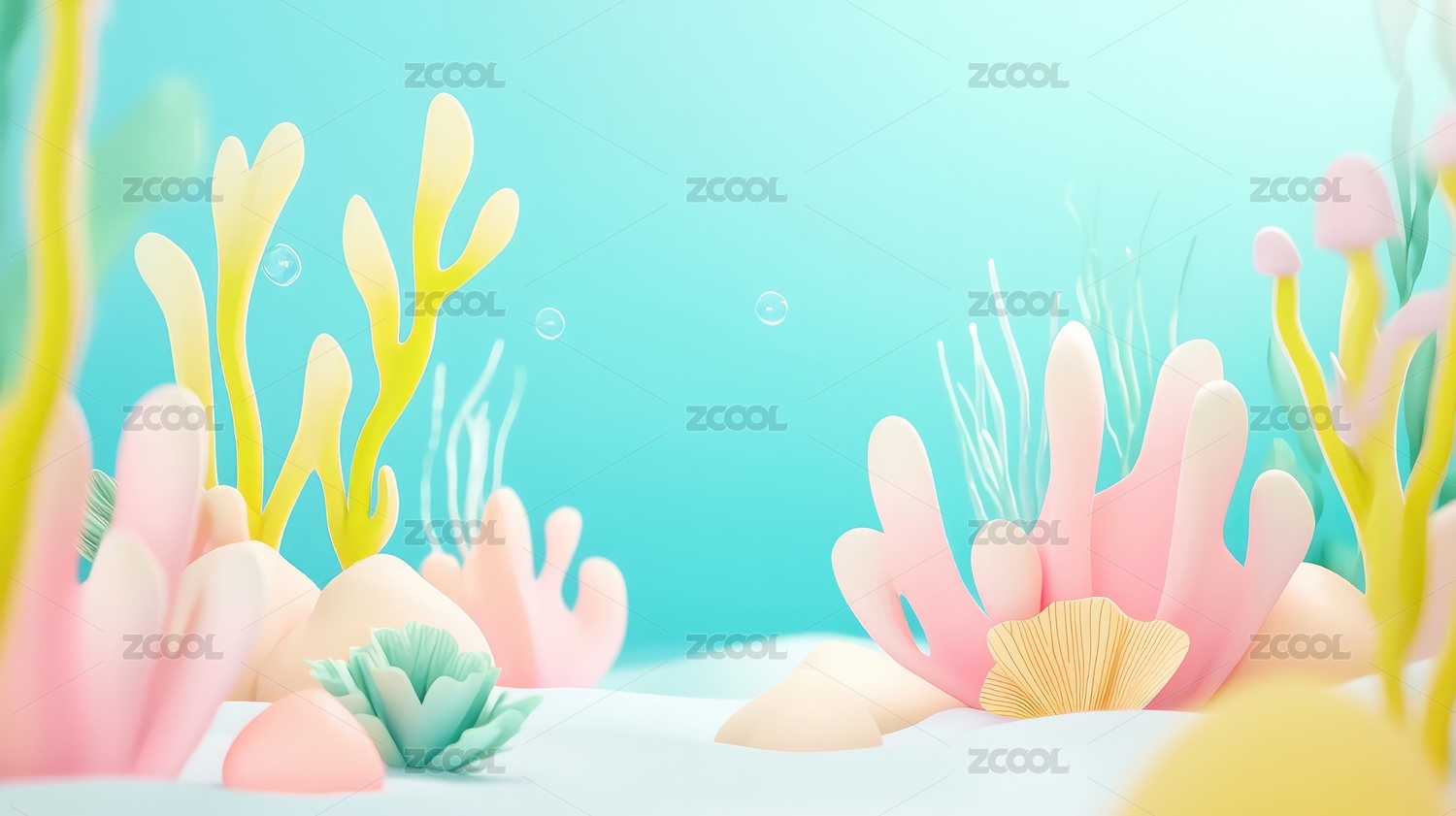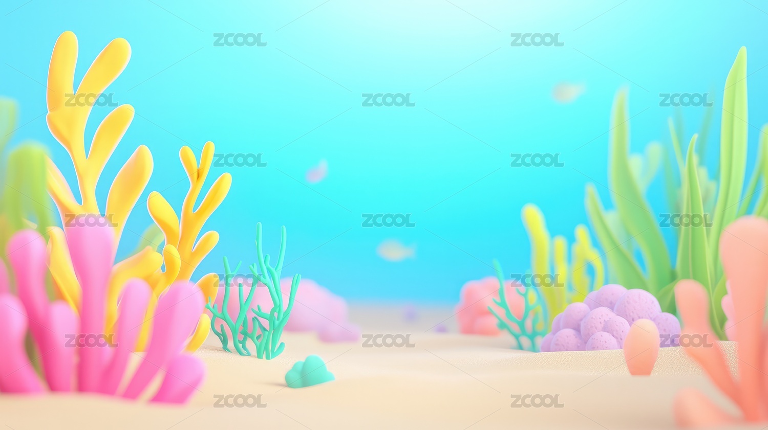 海底世界3D海洋生物珊瑚梦幻唯美自然背景