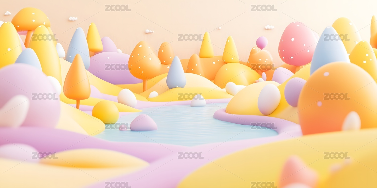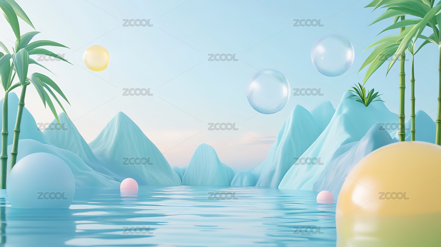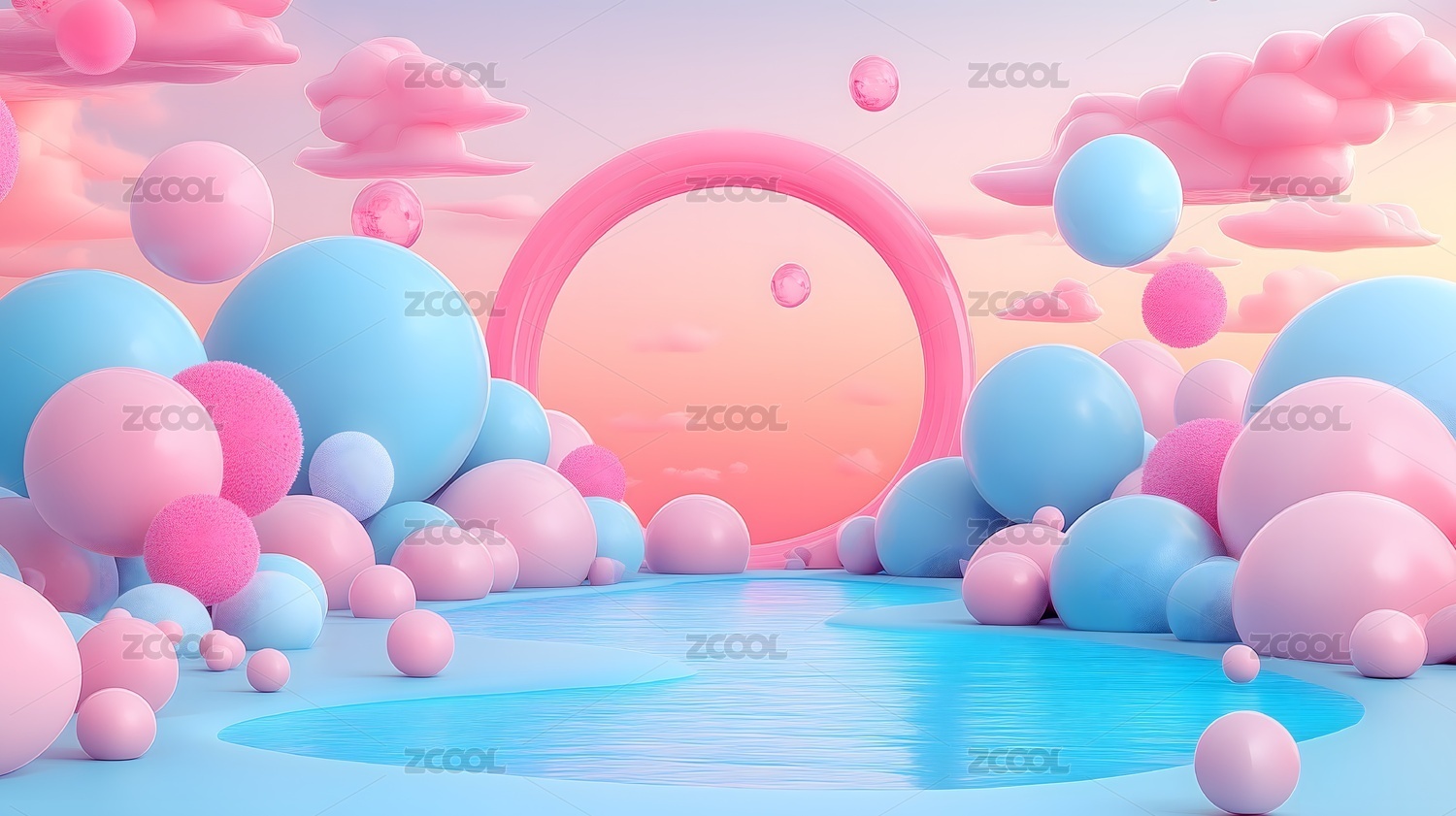 梦幻三维抽象现代时尚创意幻想美丽场景插画