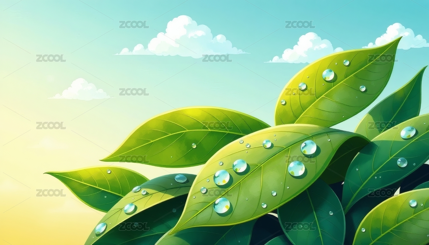 雨后清新绿叶插画
