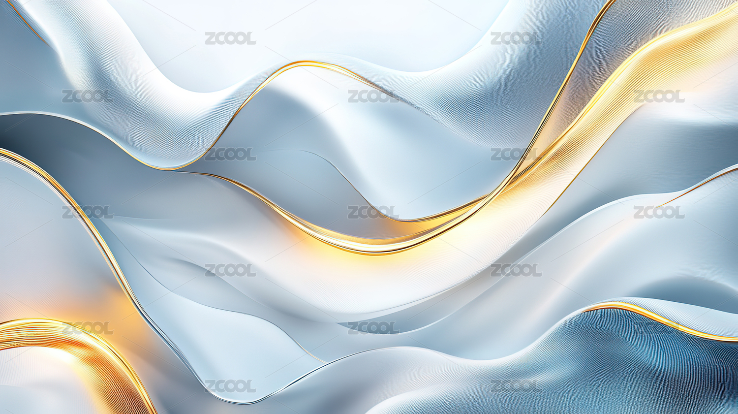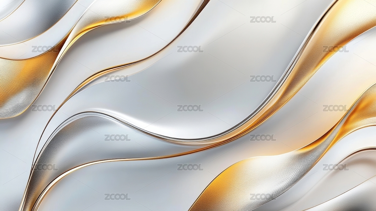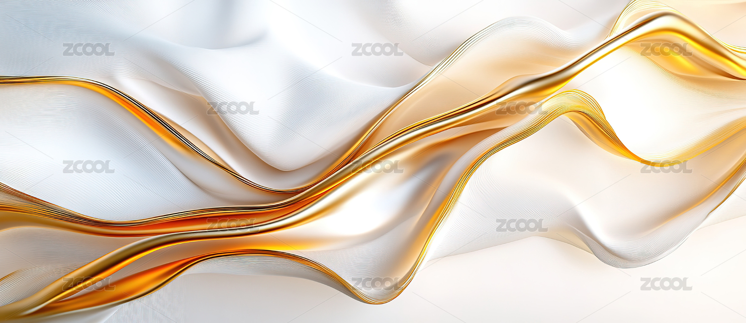 3D立体白色金色曲线抽象背景