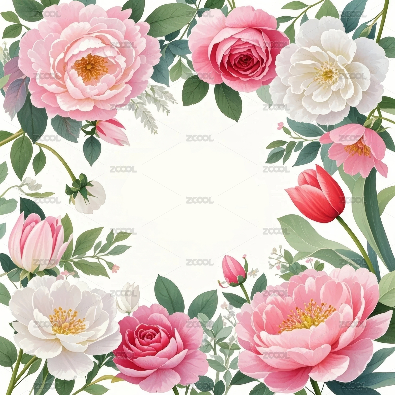 花朵,花卉,插画,唯美,卡通,植物,自然,水彩,牡丹,边框