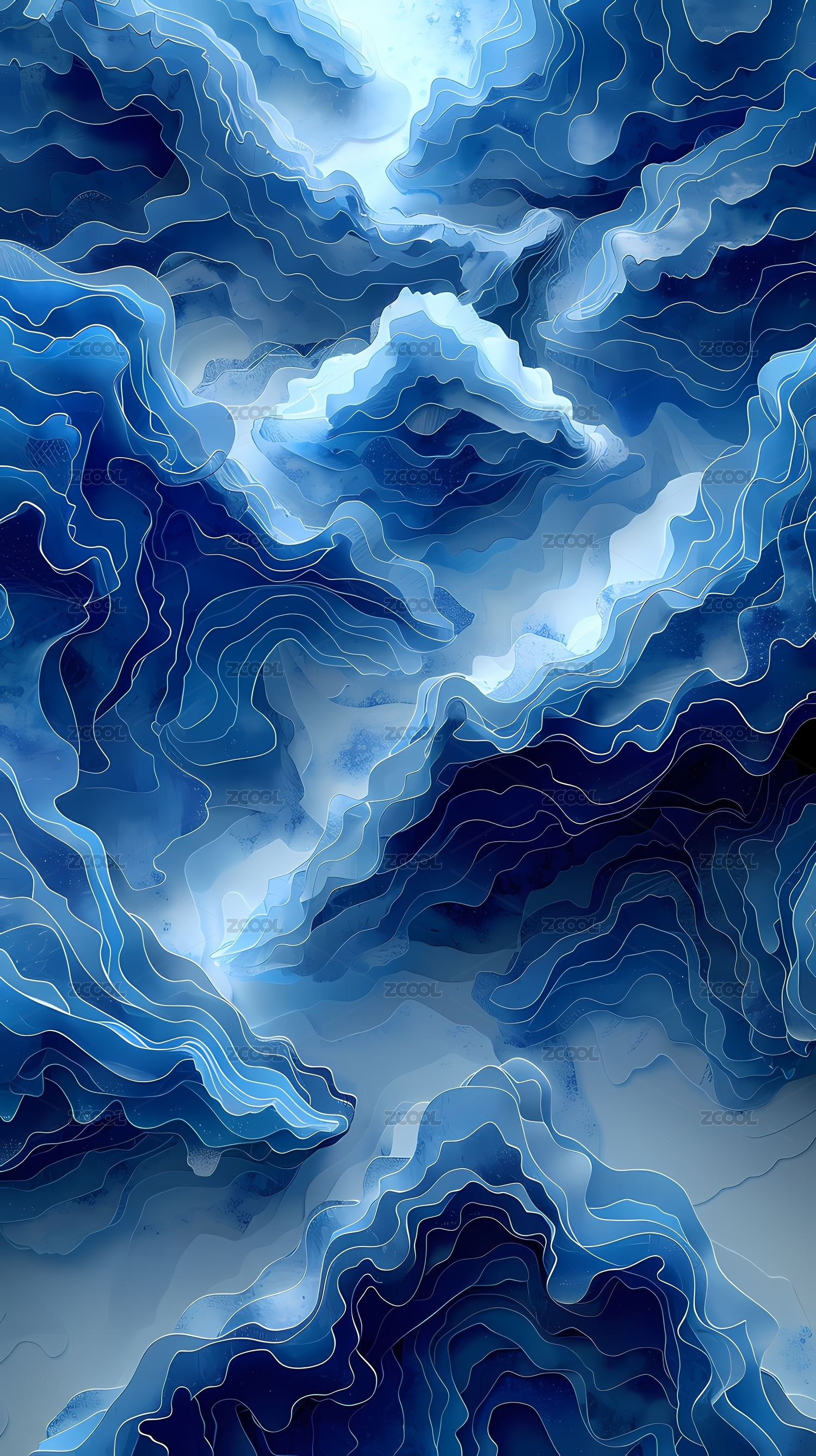 线条,山,抽象,艺术,蓝色,白色,墨水,纸张,纹理,插图