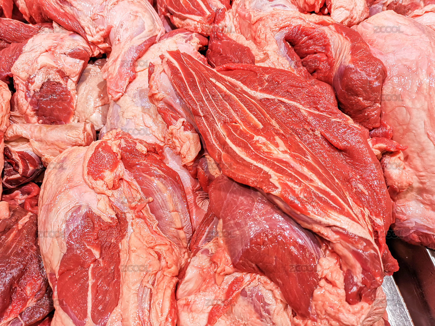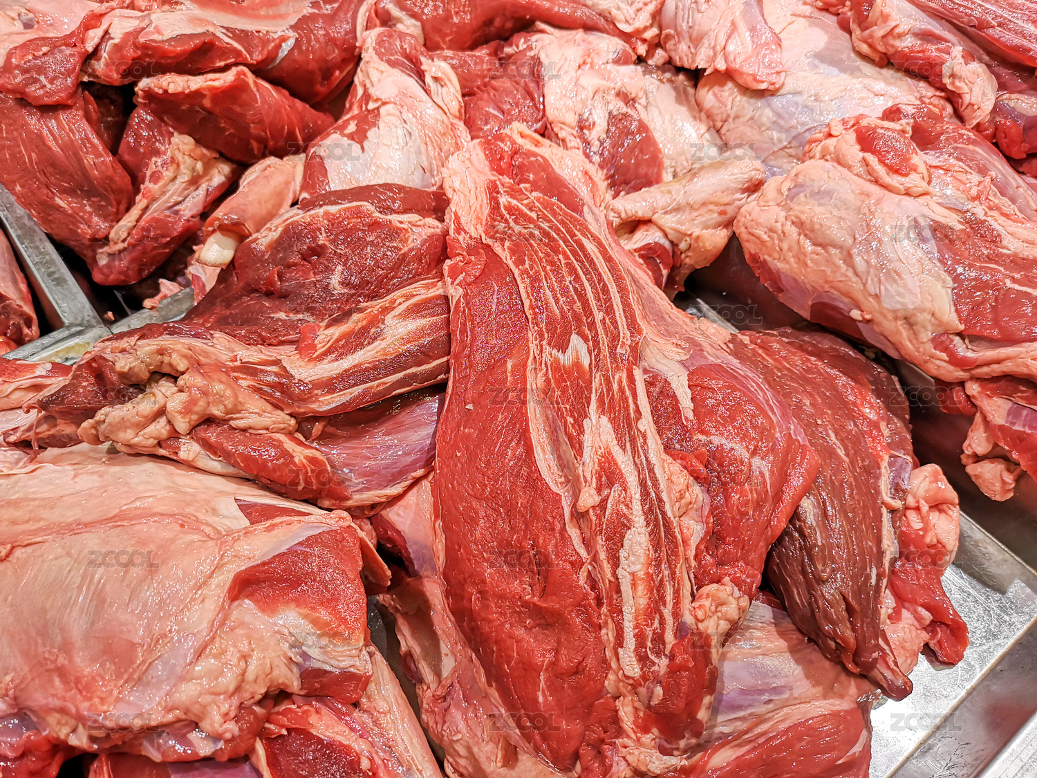 生鲜市场切好的新鲜猪肉里脊肉五花肉