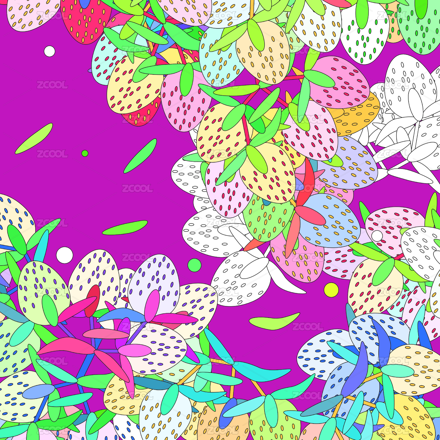 草莓,荧光,梦幻,意境,草莓藤,马卡龙色,莫兰迪色,叶子