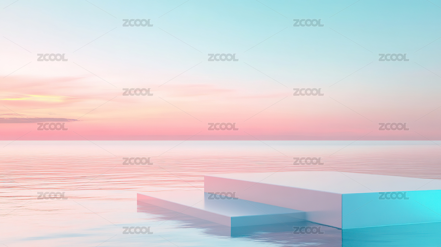 日落海景与悬浮平台