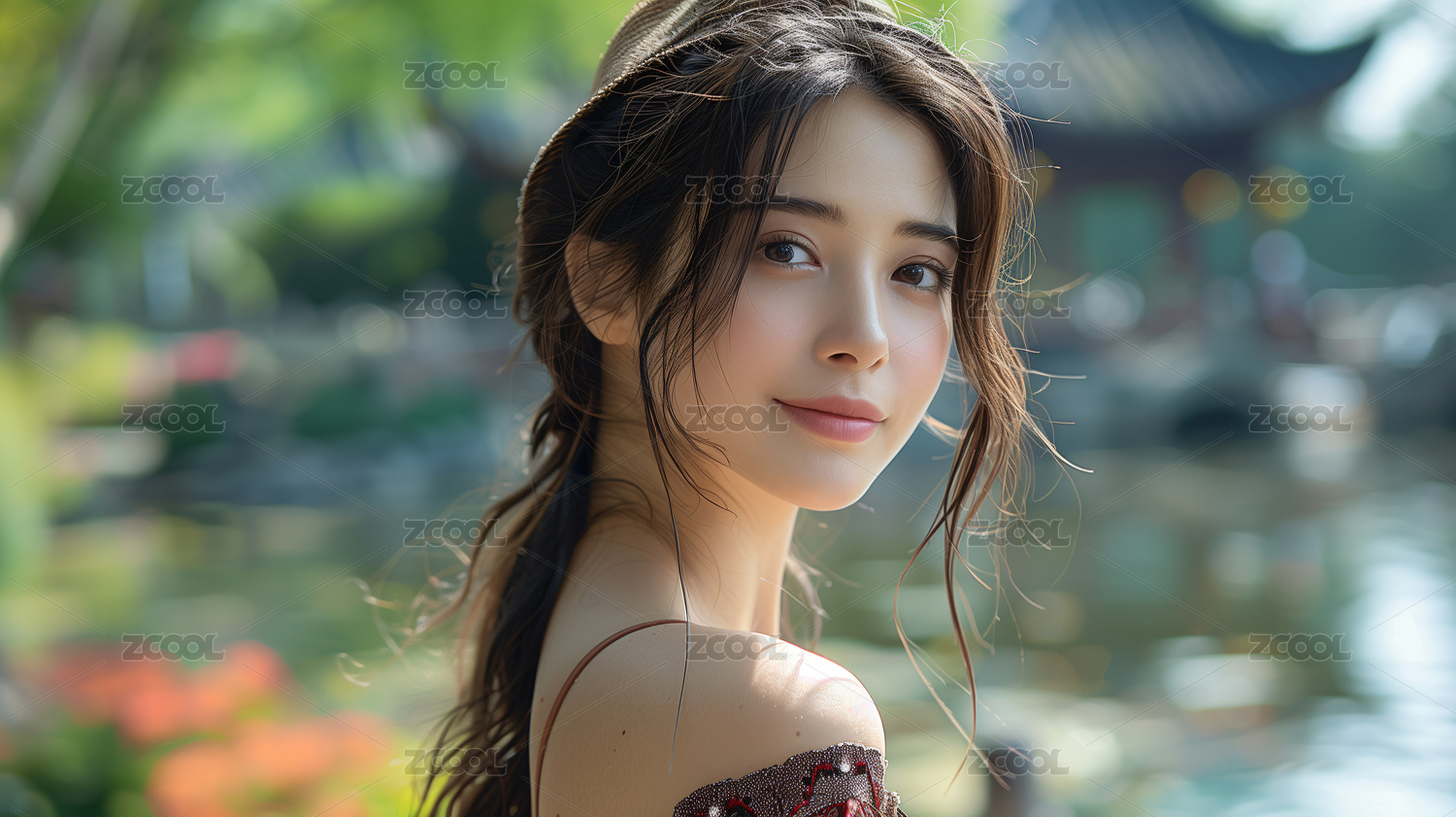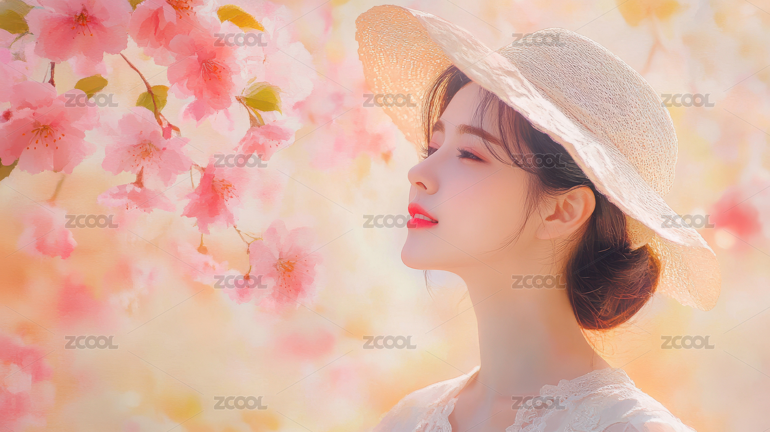服装,阳光,粉色,少女,花朵,春日,长发,侧脸,温柔,美丽