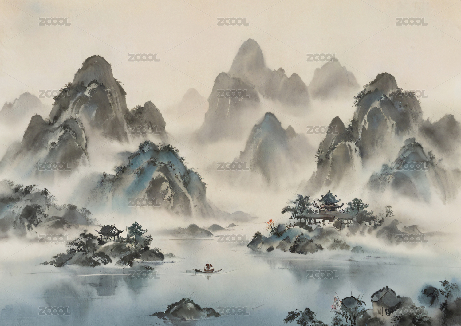 水墨画,山水画,中国风,古画,国潮,国画,山脉,山峰,山林,山峦