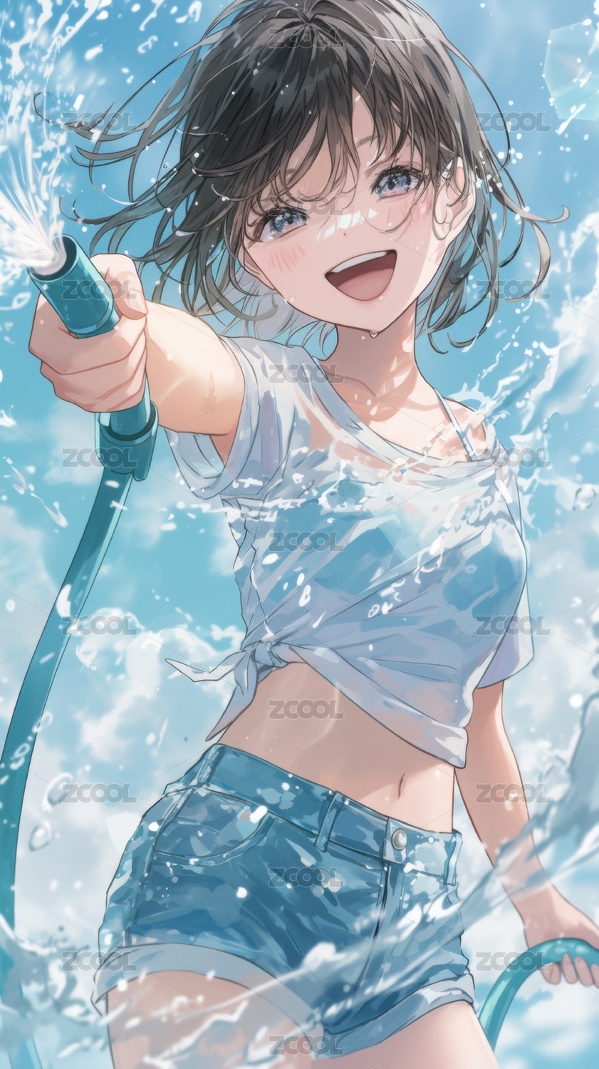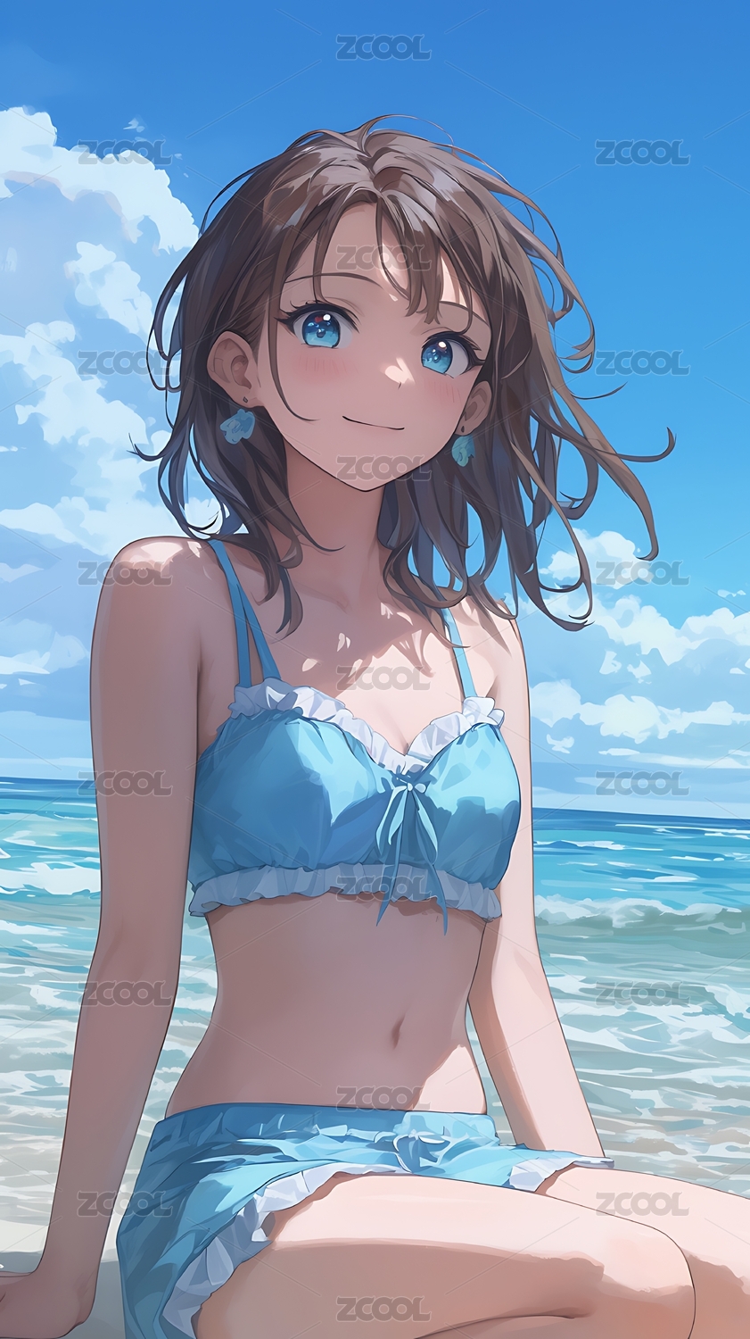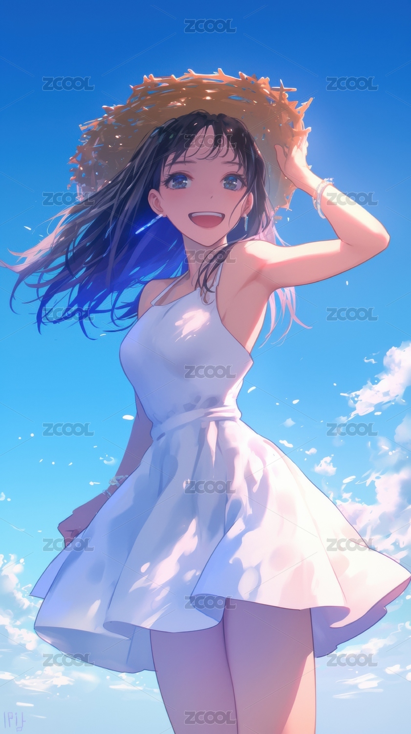 壁纸,动漫,二次元,治愈,粉色,风格,日系插画,少女,女孩,蓝天