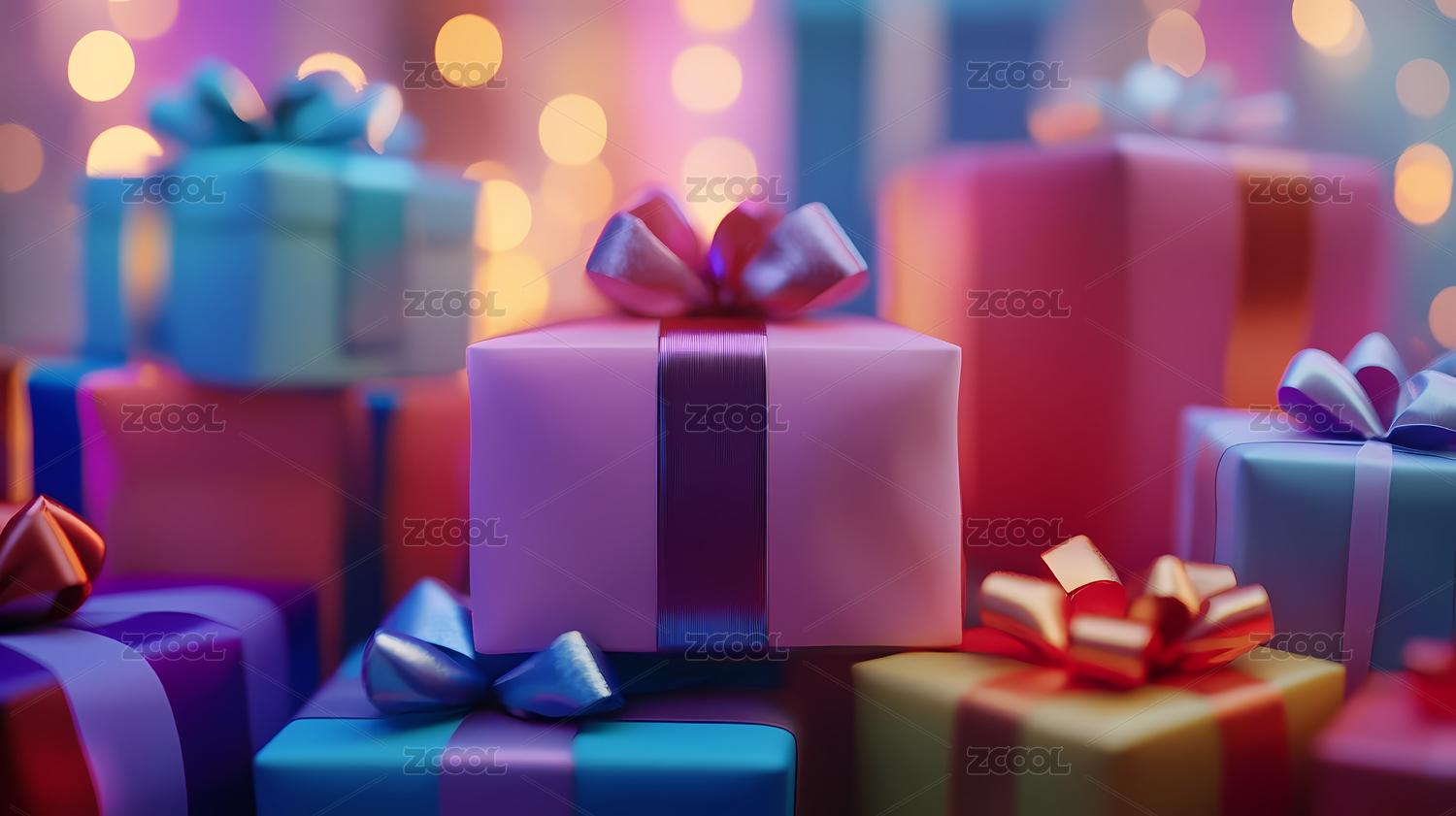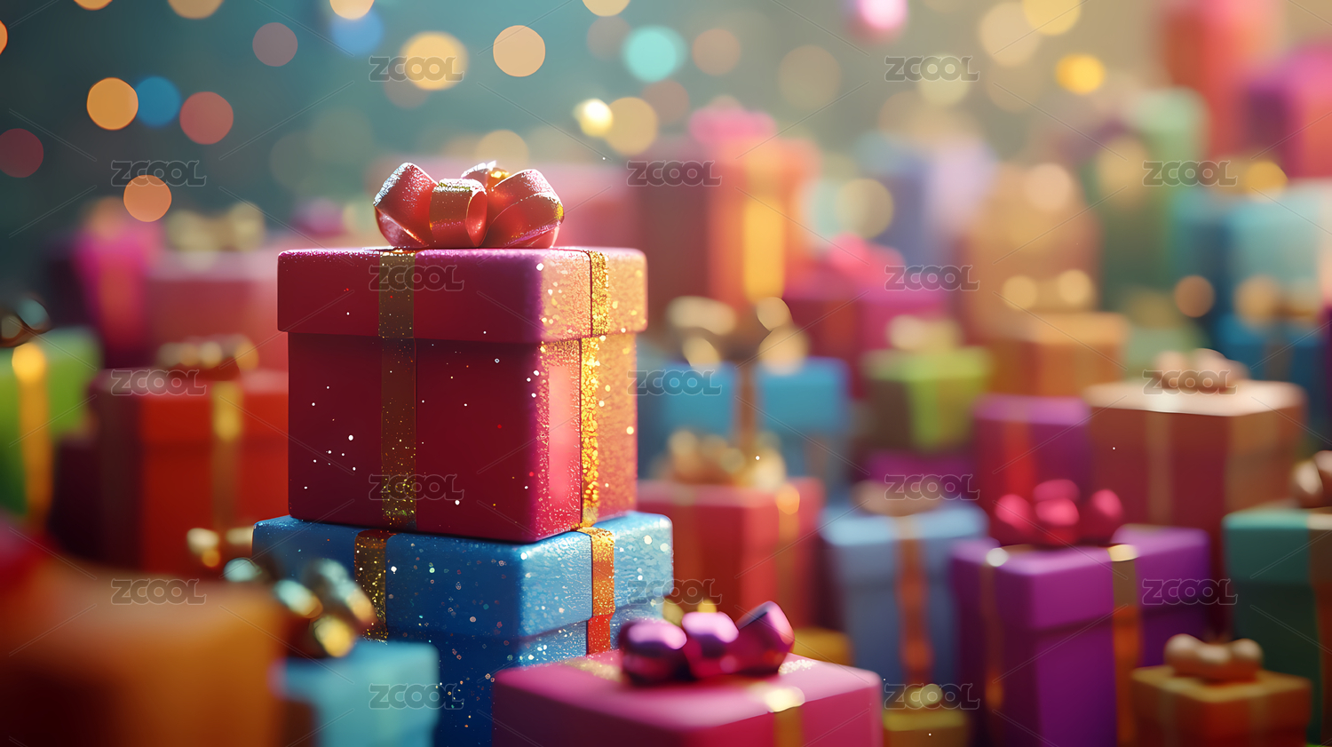 礼品盒,蝴蝶结,波点,多彩,光斑,庆祝,节日,装饰,礼物,圣诞节