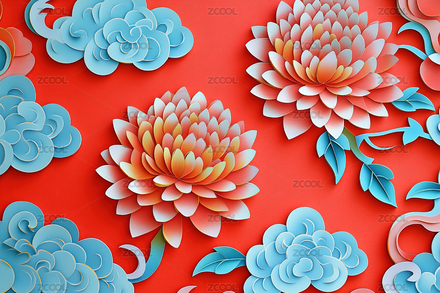 3d中国风纸雕艺术场景,剪纸艺术