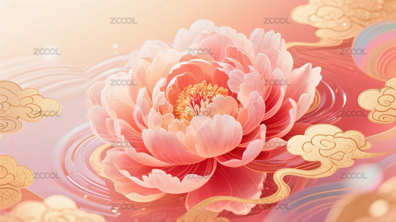 中式花卉的牡丹艺术背景图
