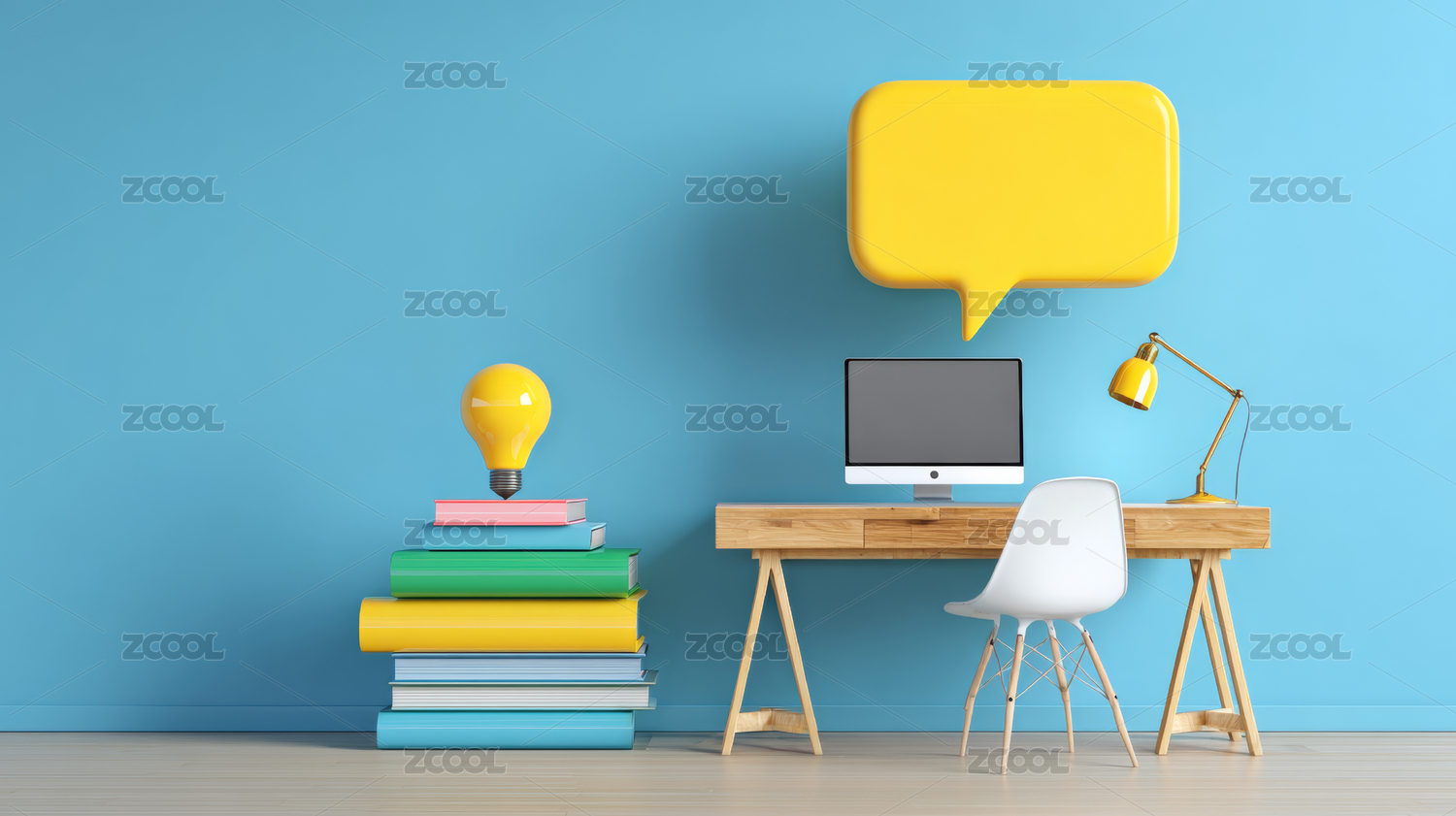 黄色,装饰,设计,清新,现代,简约,室内,气泡,座椅,蓝色背景