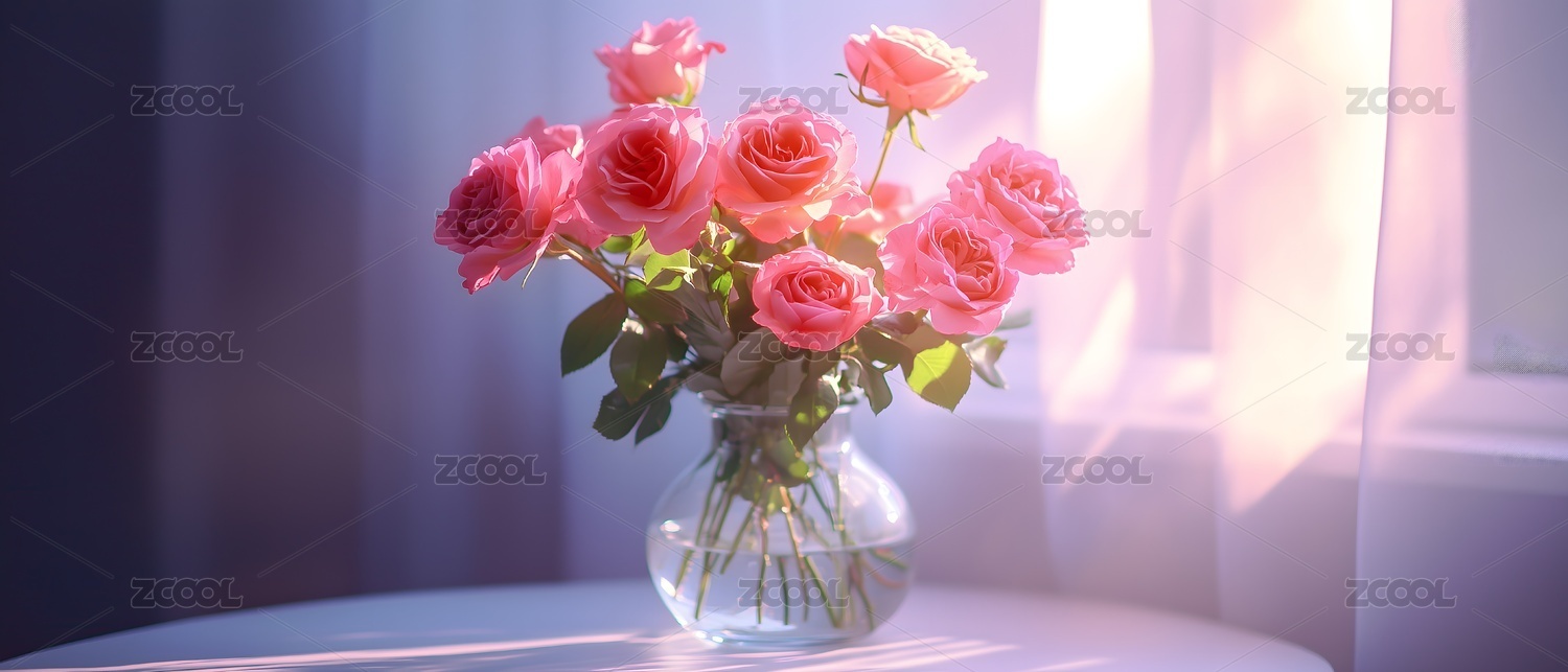 浪漫,优雅,柔和,花束,光影,粉玫瑰,粉色背景,玻璃花瓶,鲜花