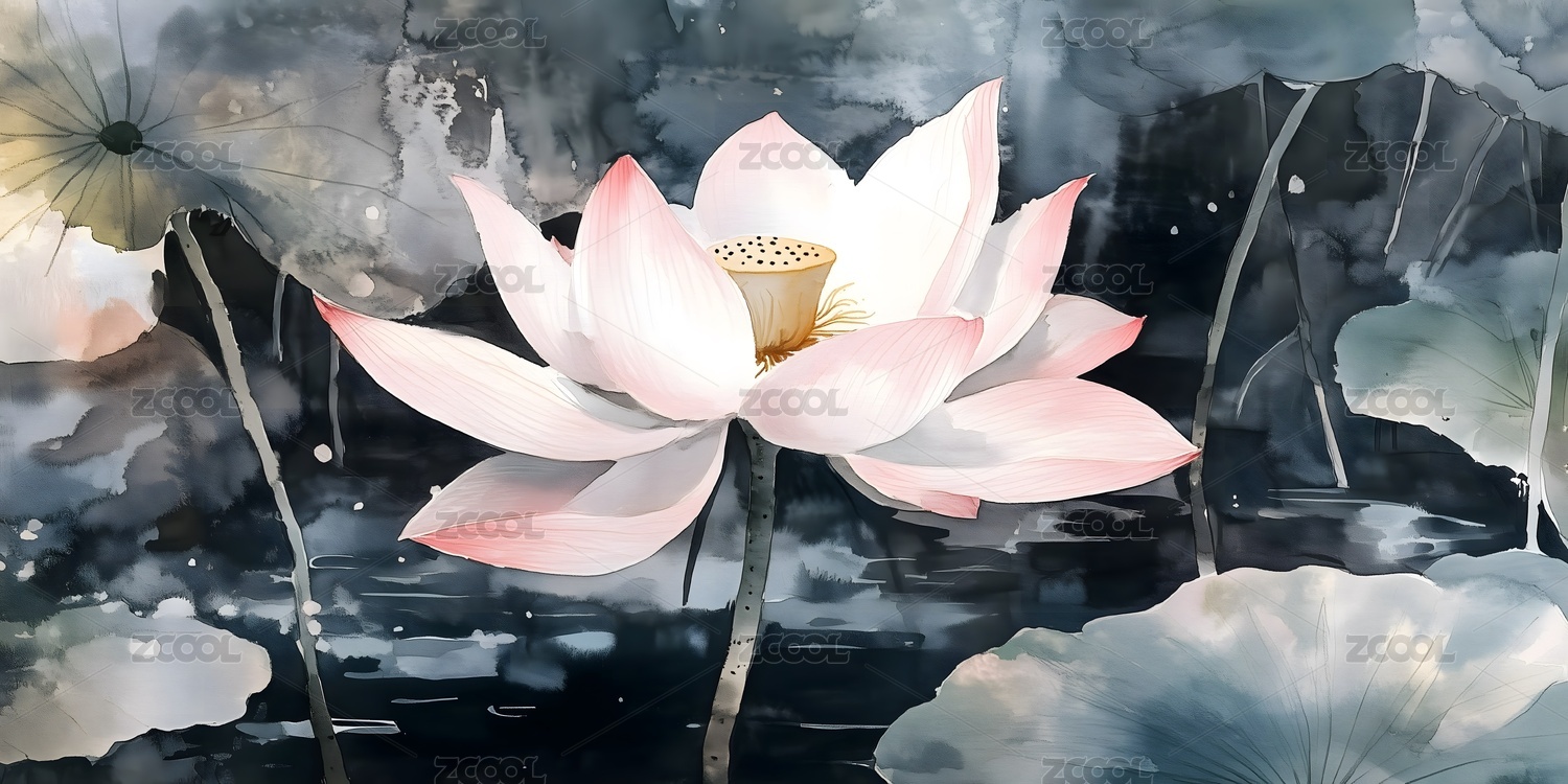 水墨莲花绽放清雅脱俗