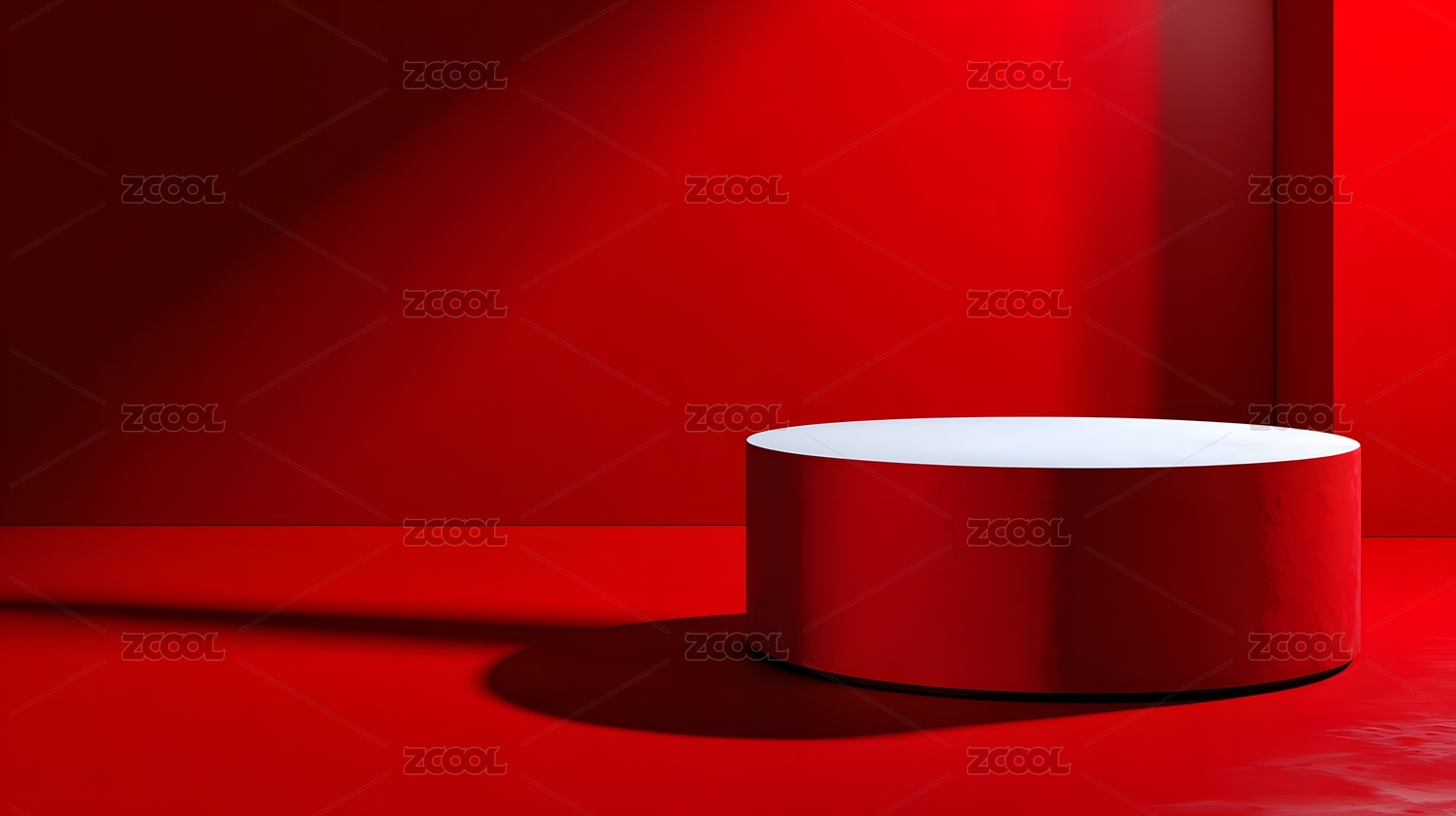 红色,圆柱,底座,平台,台子,光滑,墙壁,窗帘,阴影,柔和