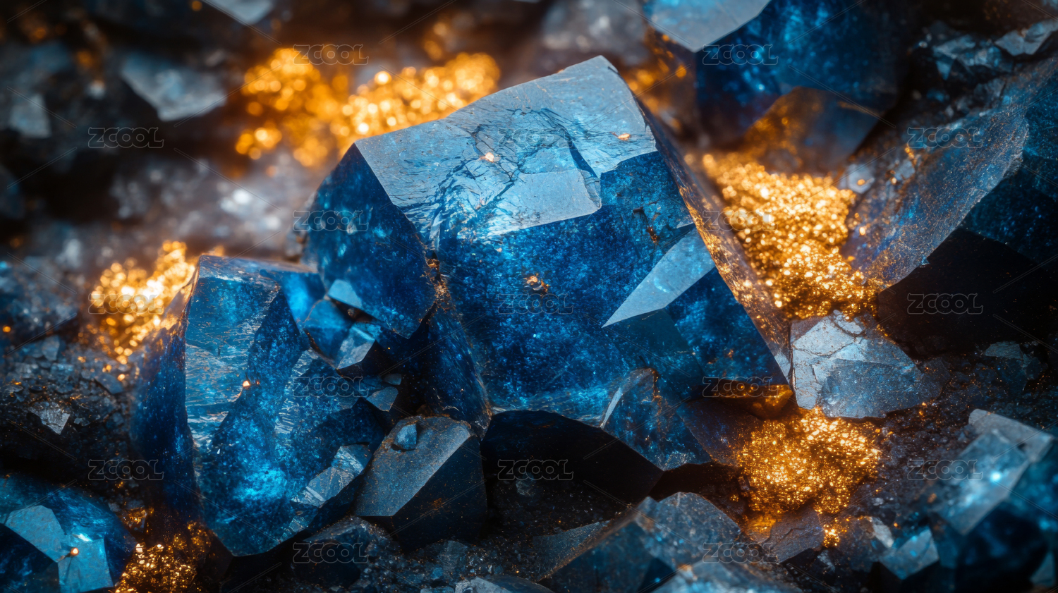 金黄色水晶簇在深蓝背景下的璀璨展示