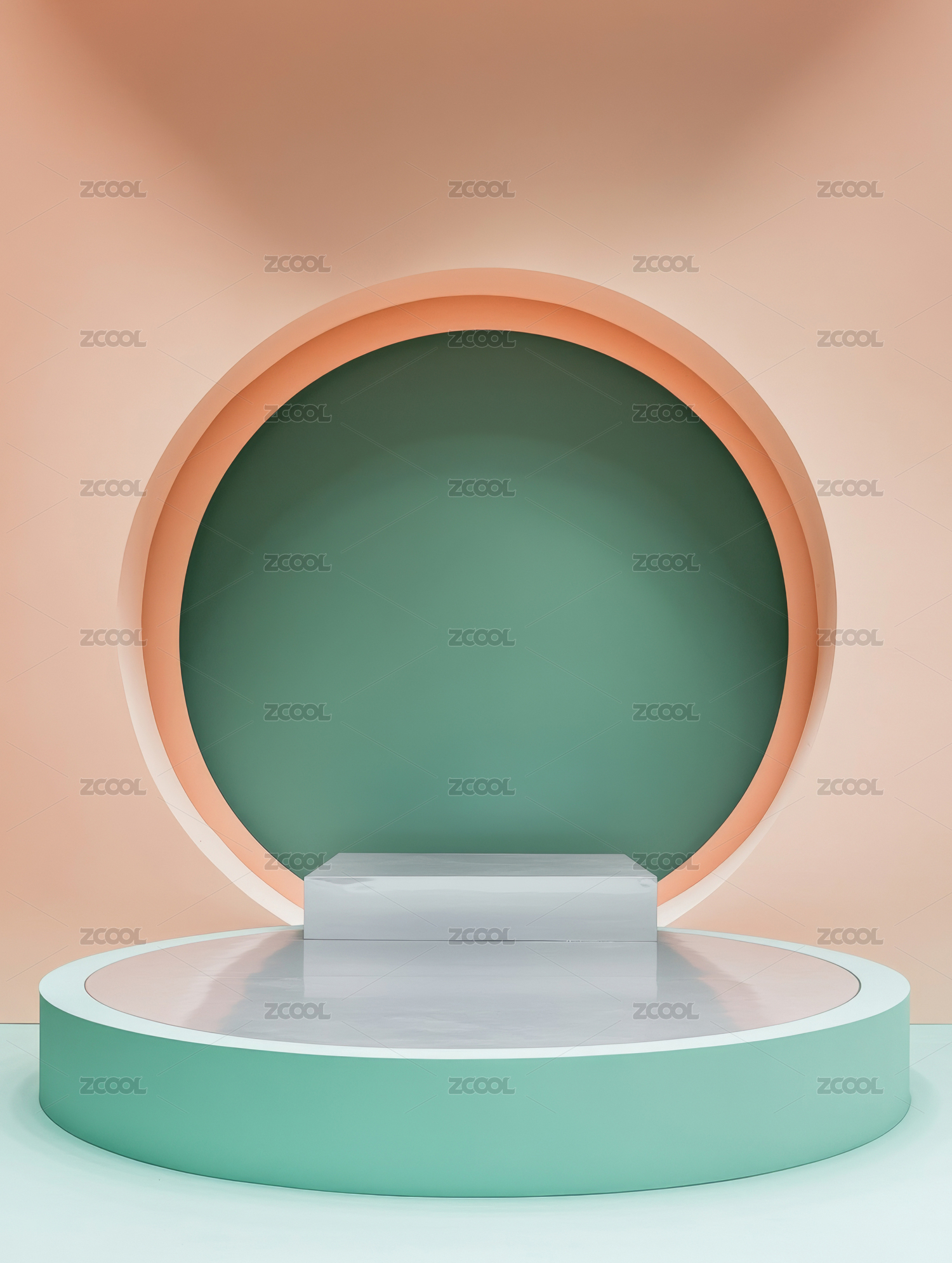 绿色拱形背景的圆形展台