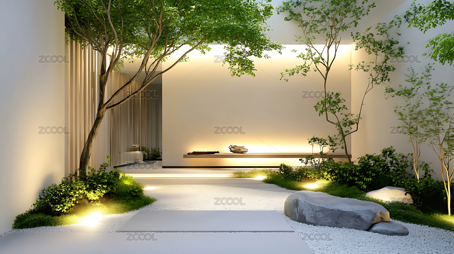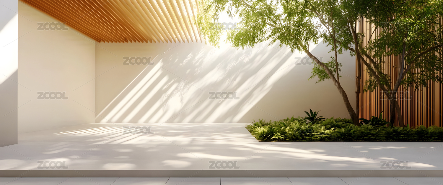 室内,花园,现代,设计,树木,光影,石板,简约,自然,建筑