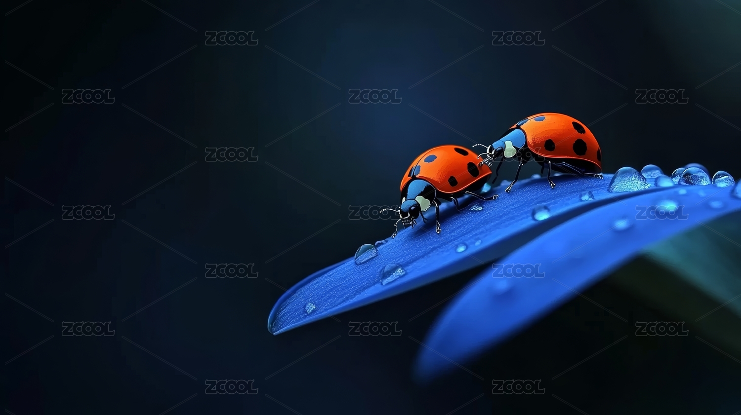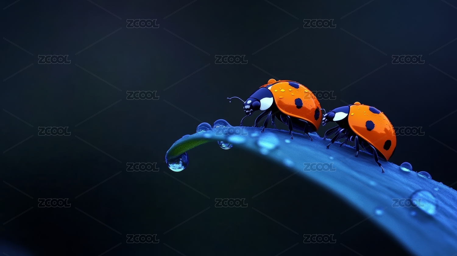 瓢虫,雪地,黑斑点,大眼睛,触角,腿脚,雪花,萌态,卡通,可爱