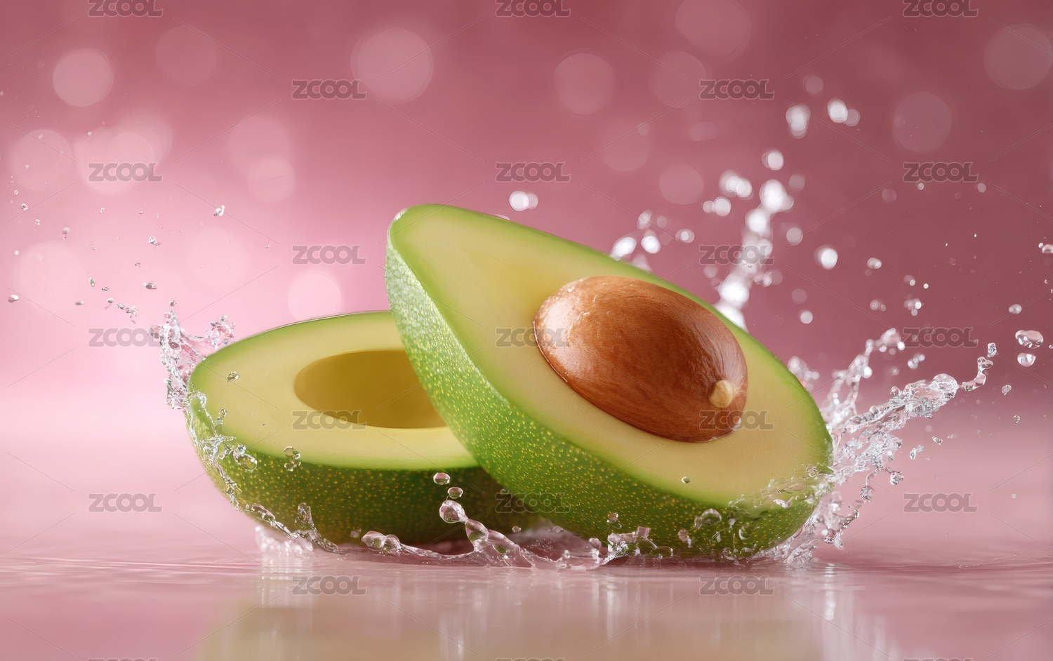 牛油果切开水花飞溅场景