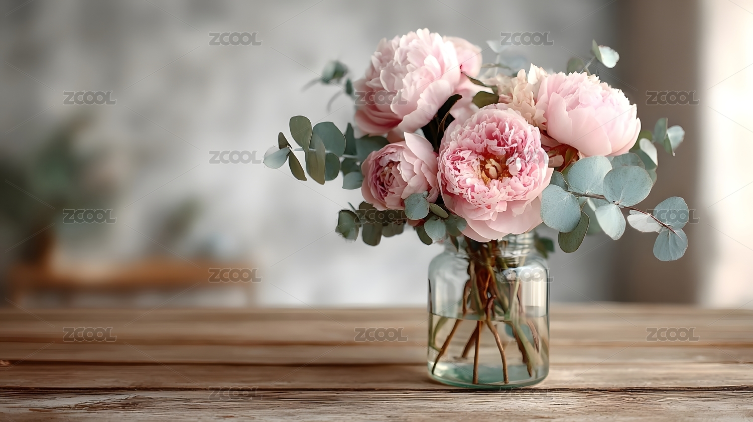 粉色牡丹花束在玻璃罐中