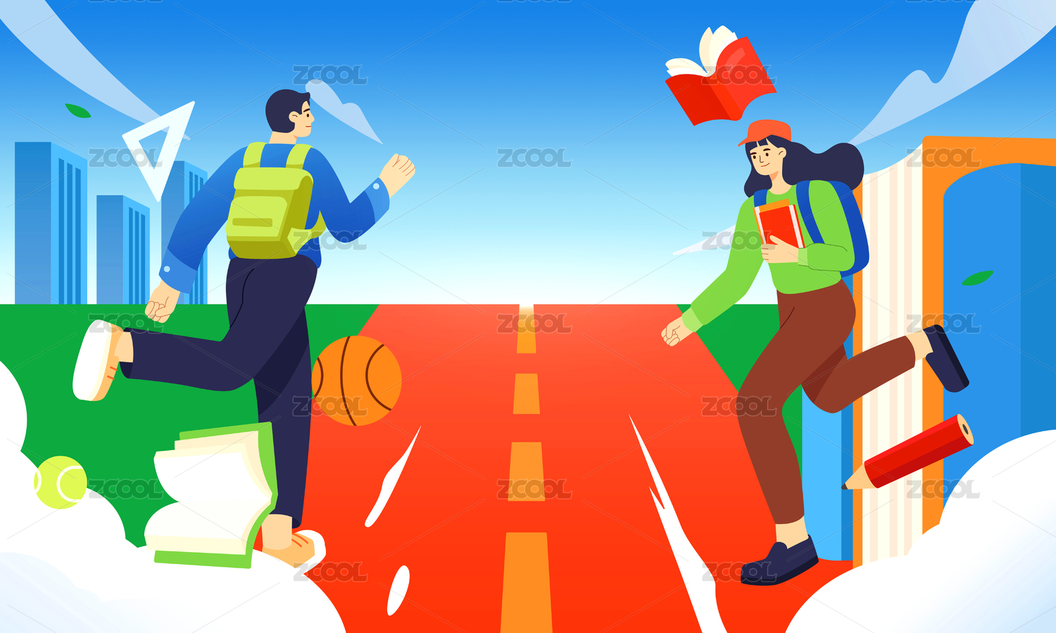 高考必胜倒计时中学生考试冲刺加油学习插画