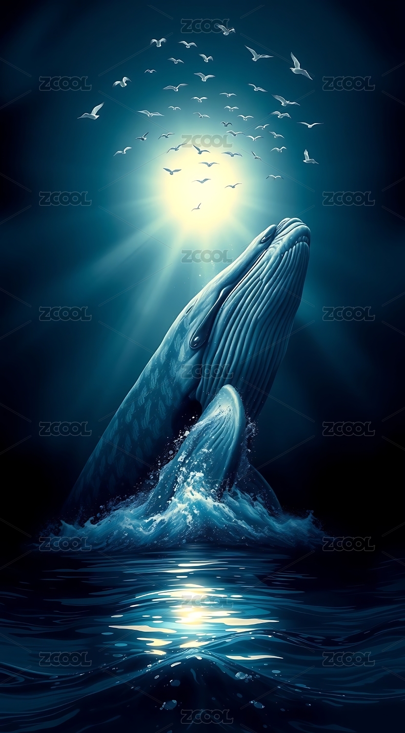 鲸鱼, 海洋, 阳光, 深海, 水下, 自然, 生物, 动物, 光线, 海水