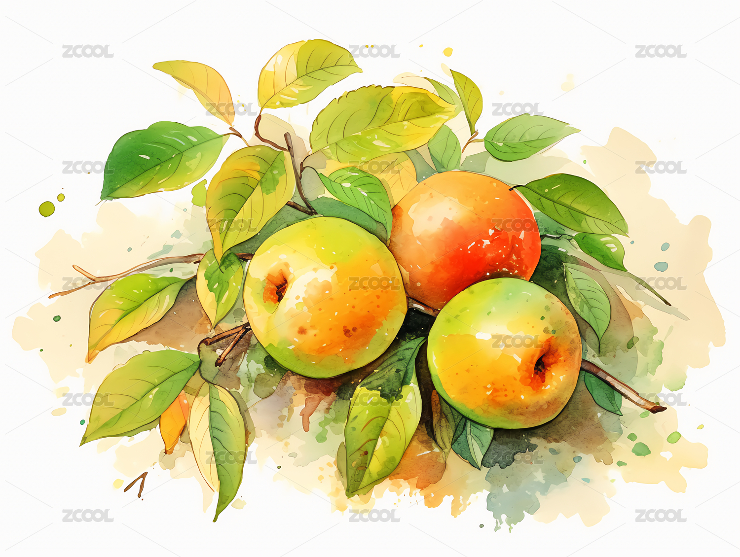 水彩黄杏