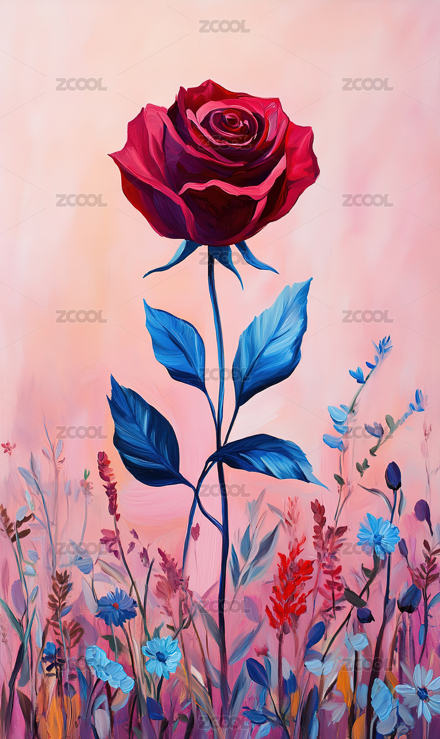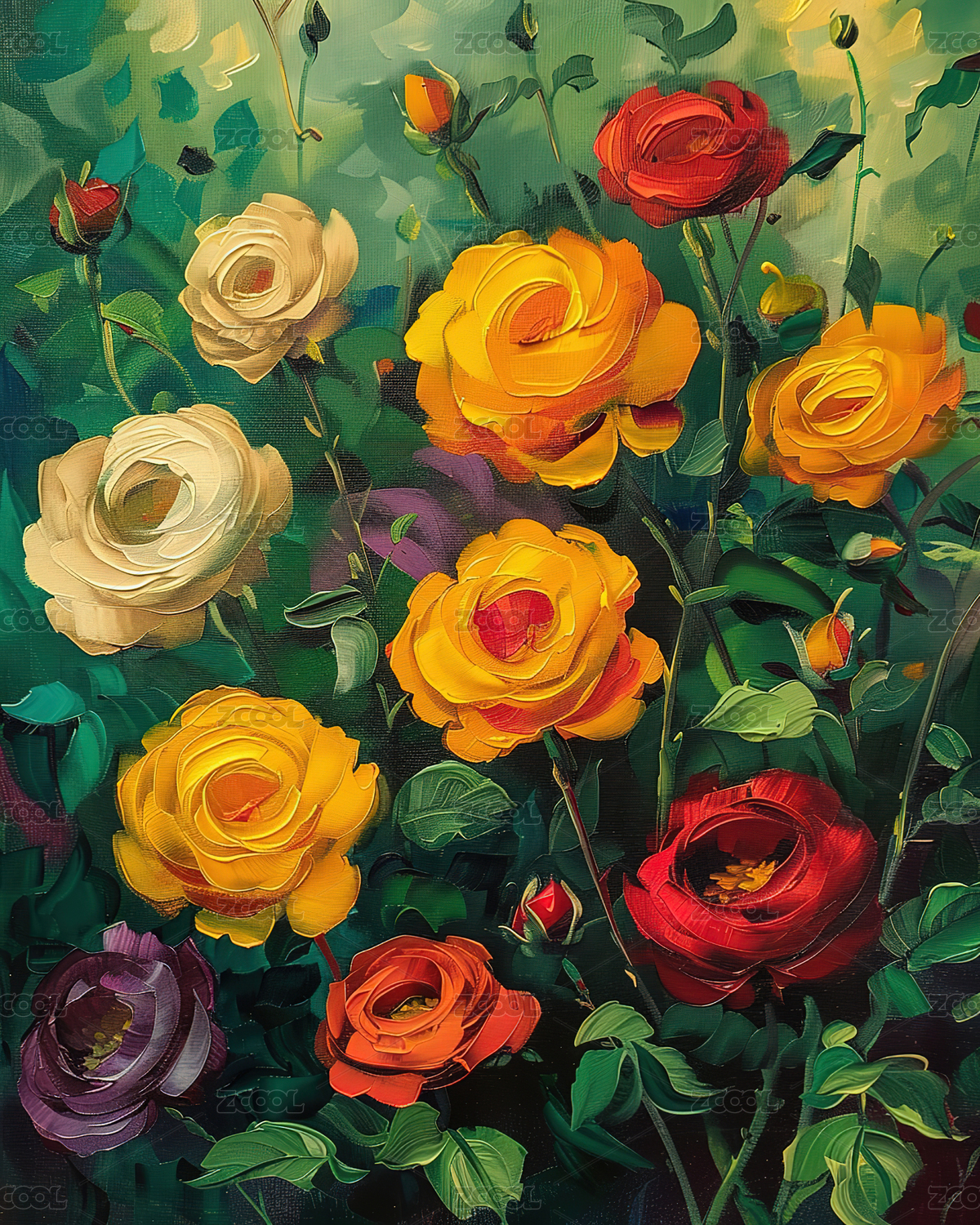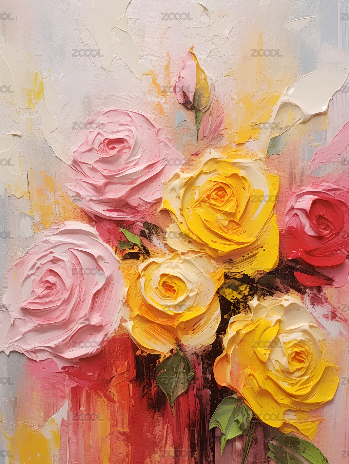 彩色绚丽丙烯油画玫瑰花朵装饰画