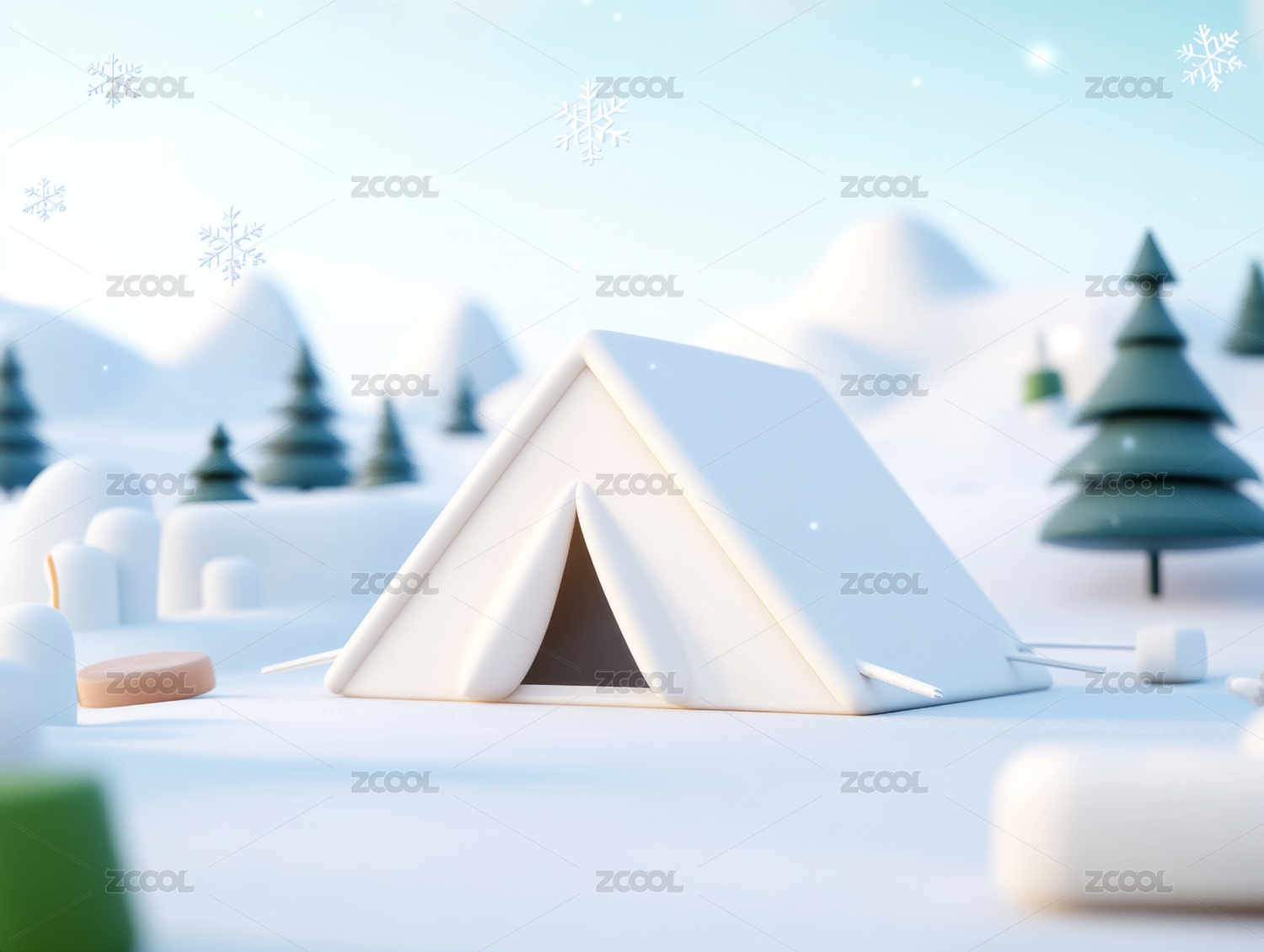 冬季雪景露营地3D渲染图