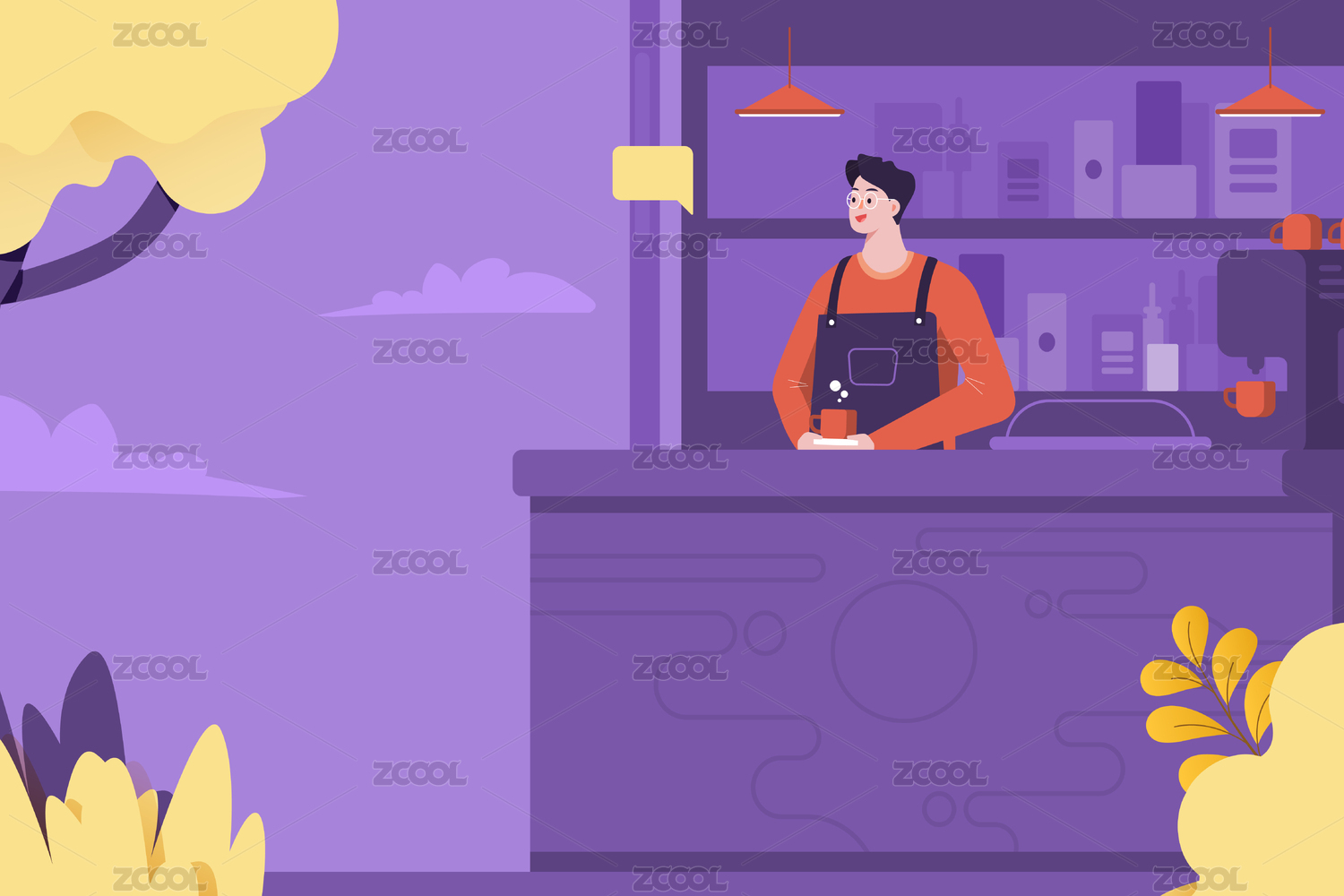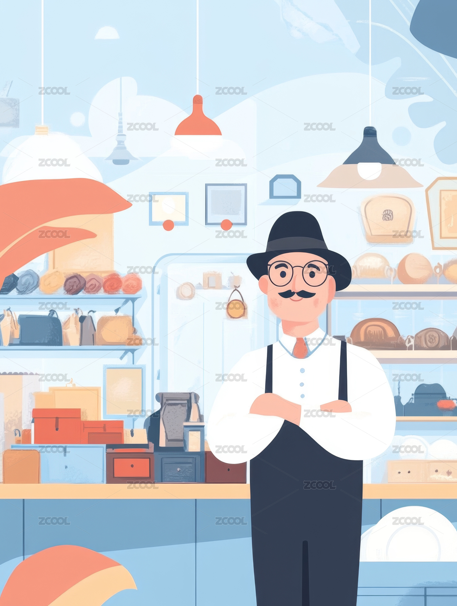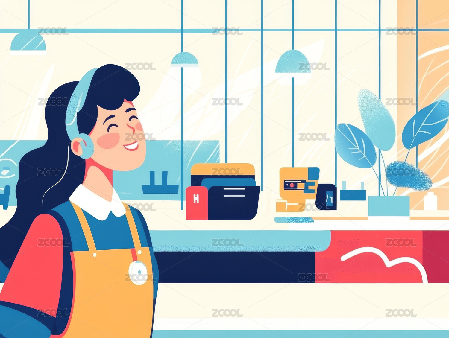 文具店员插画背景