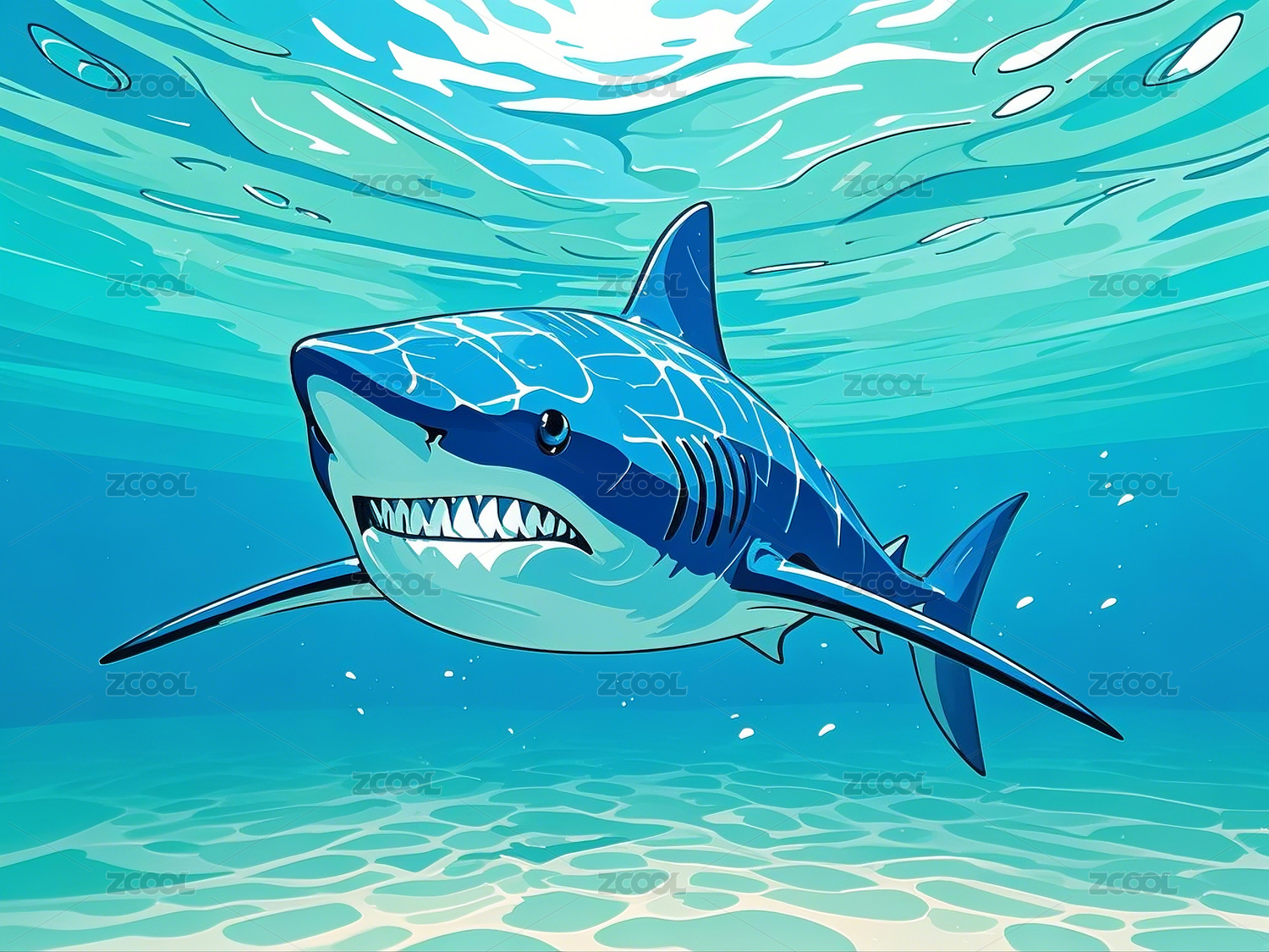 卡通,冒险,可爱,生物,动物,鲨鱼,海洋,鱼,海底,世界