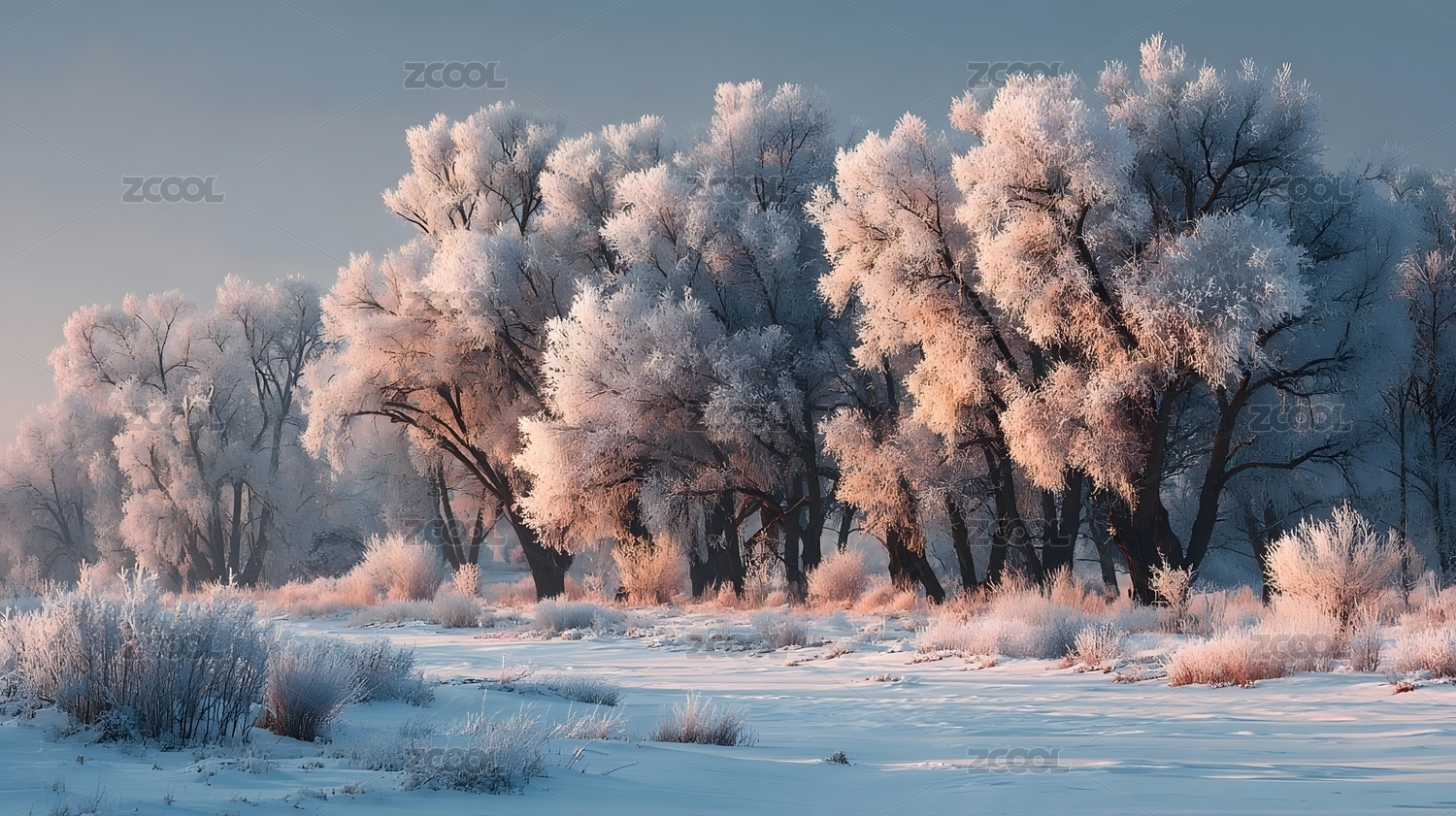 冬季,雾凇,寒冷,自然景观,树木,雾气,蓝色调,朦胧,宁静氛围