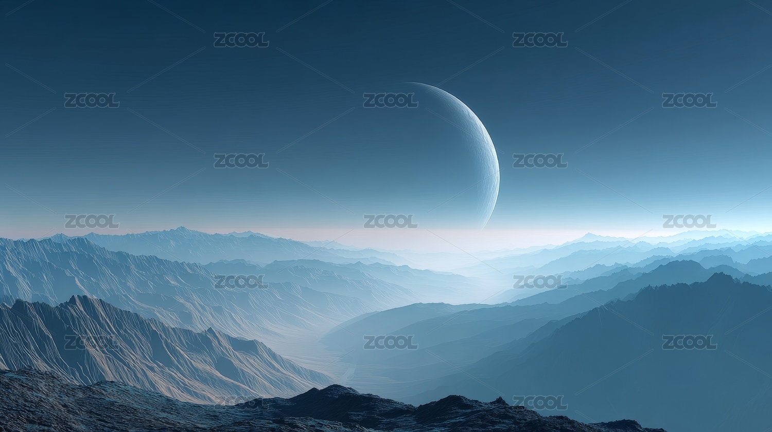 太空,天体,半圆,暗色,光晕,平原,冰层,波纹,凹凸,山脉