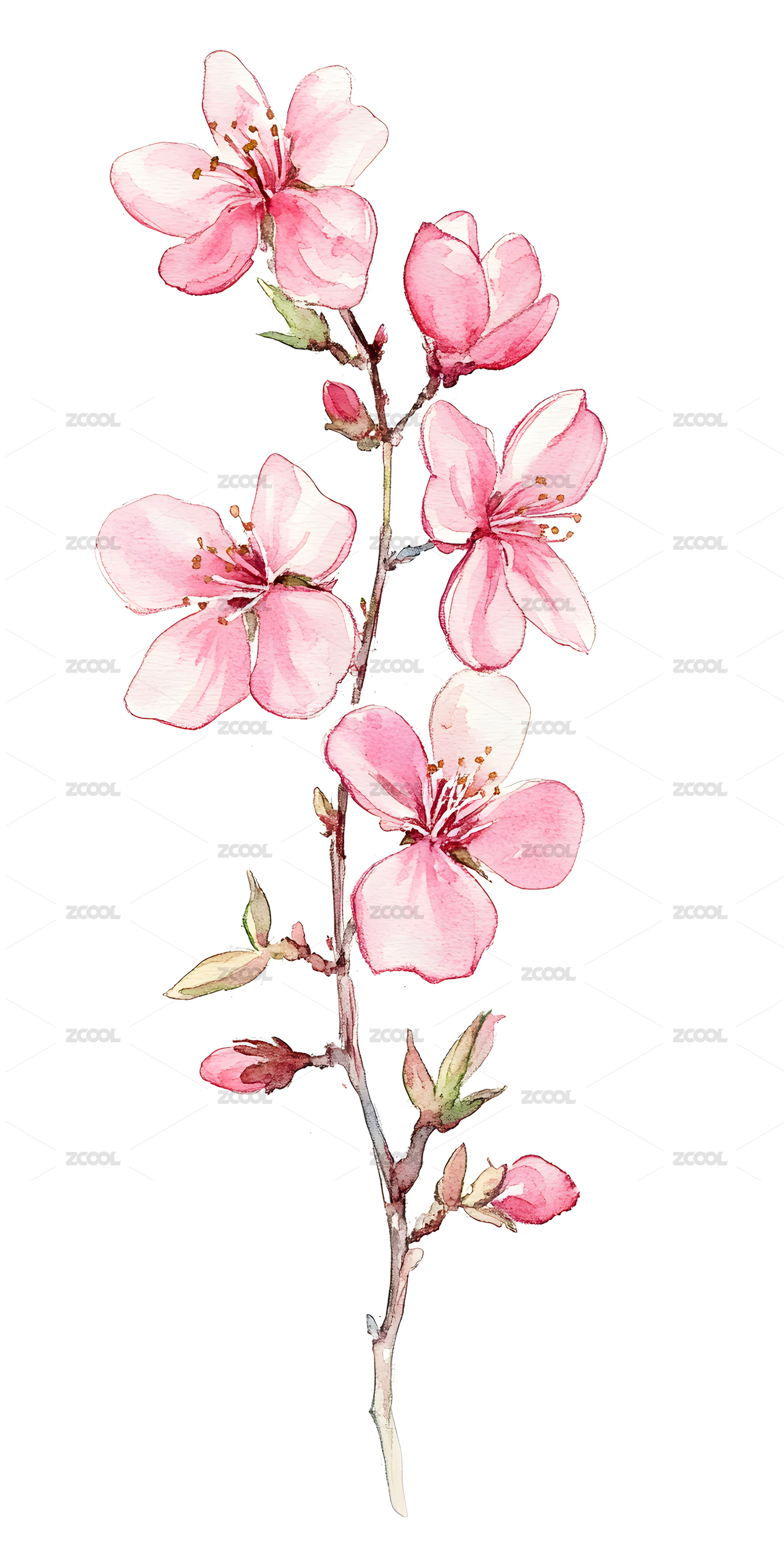 水彩粉红色杏花枝