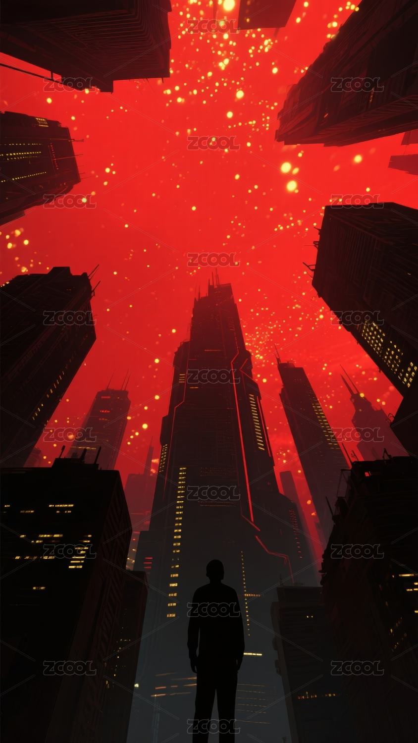 神秘红色光芒笼罩城市