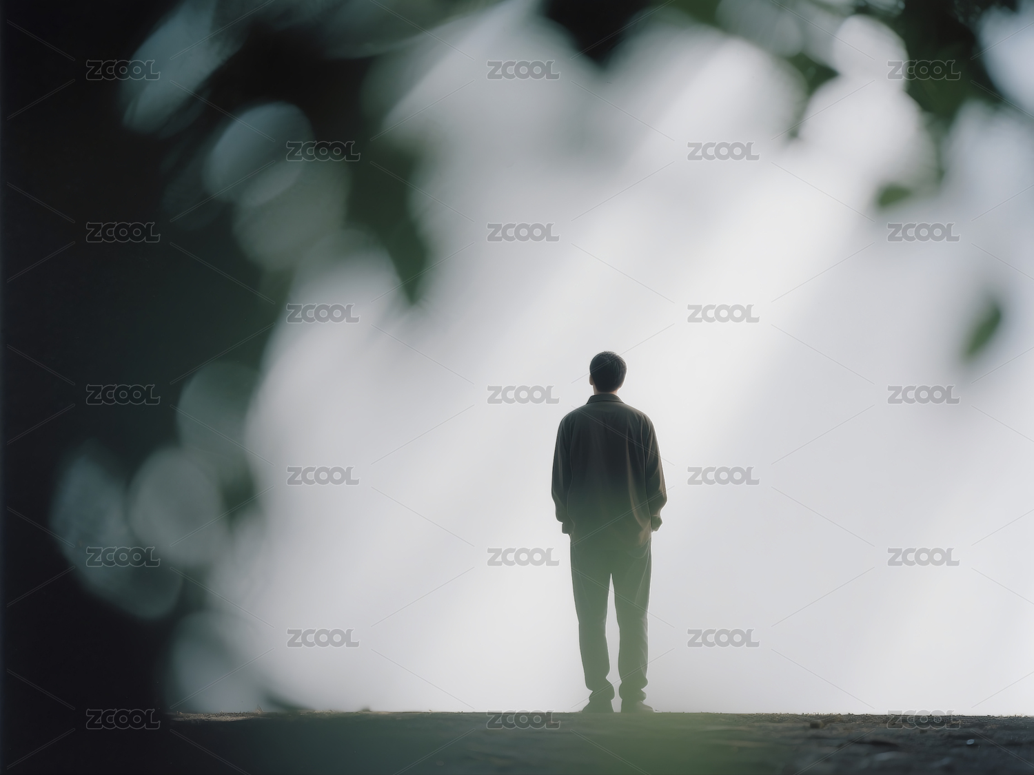 孤独人影与冷色夜景