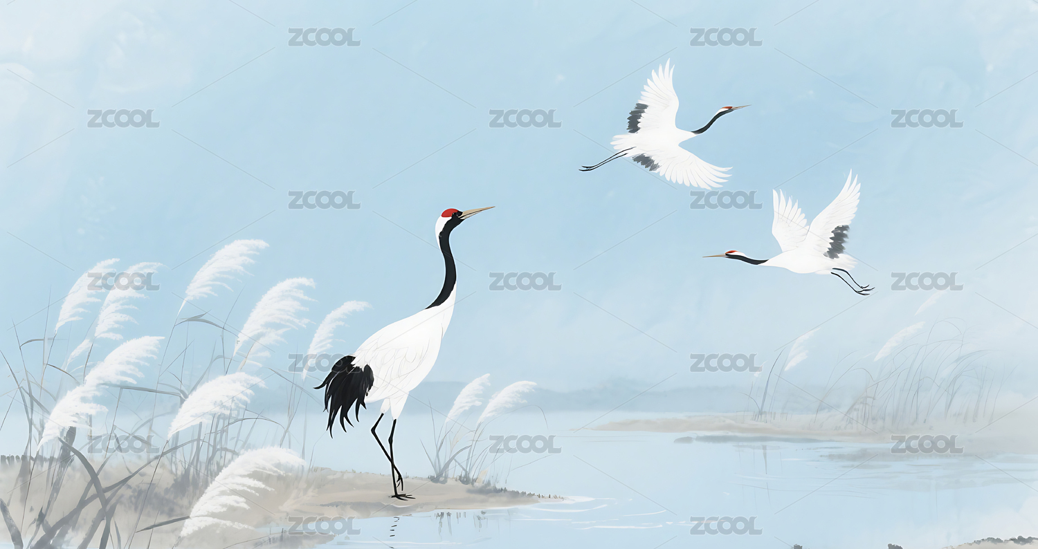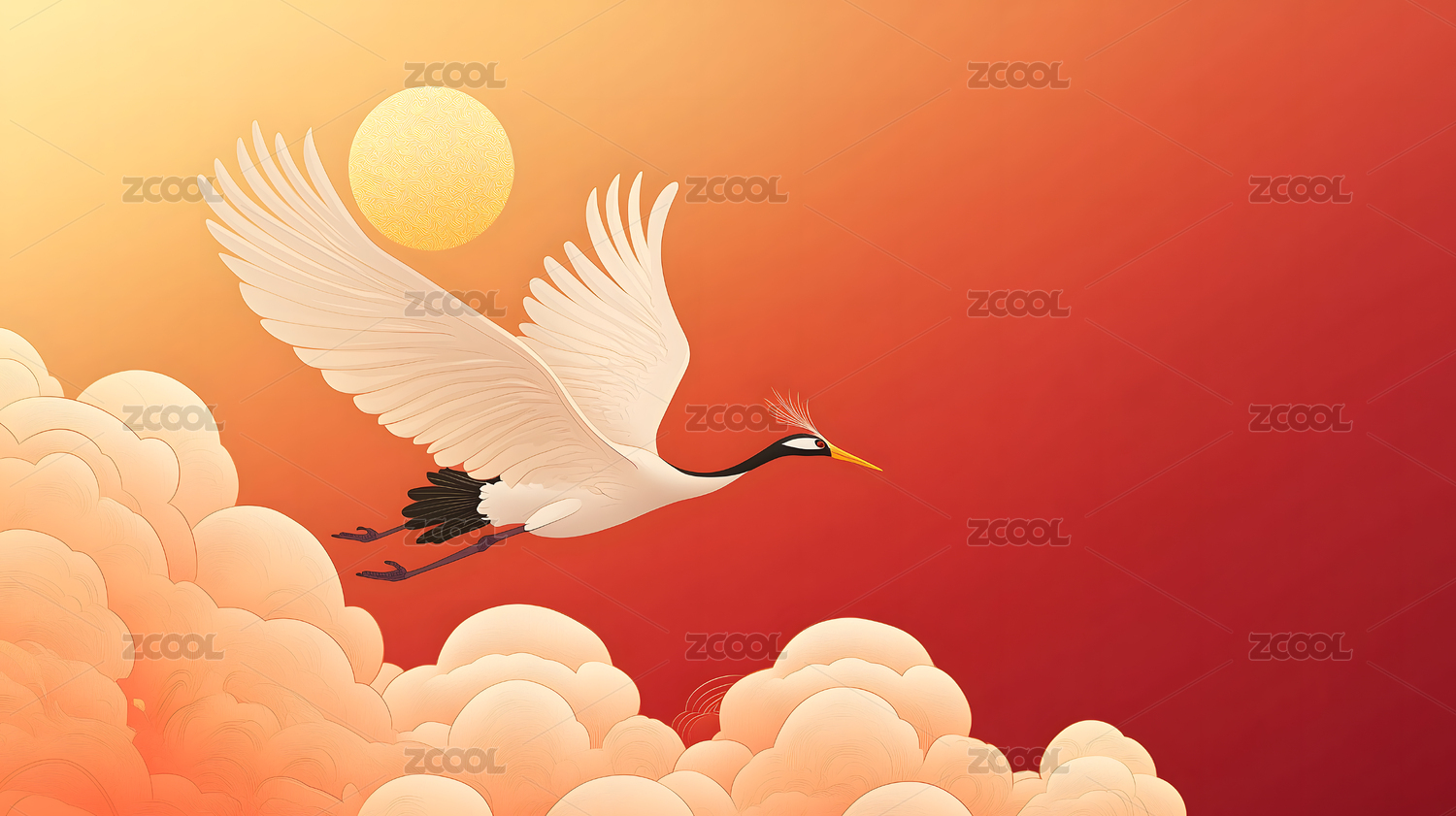 重阳节主题背景仙鹤丹顶鹤中国风国画工笔画