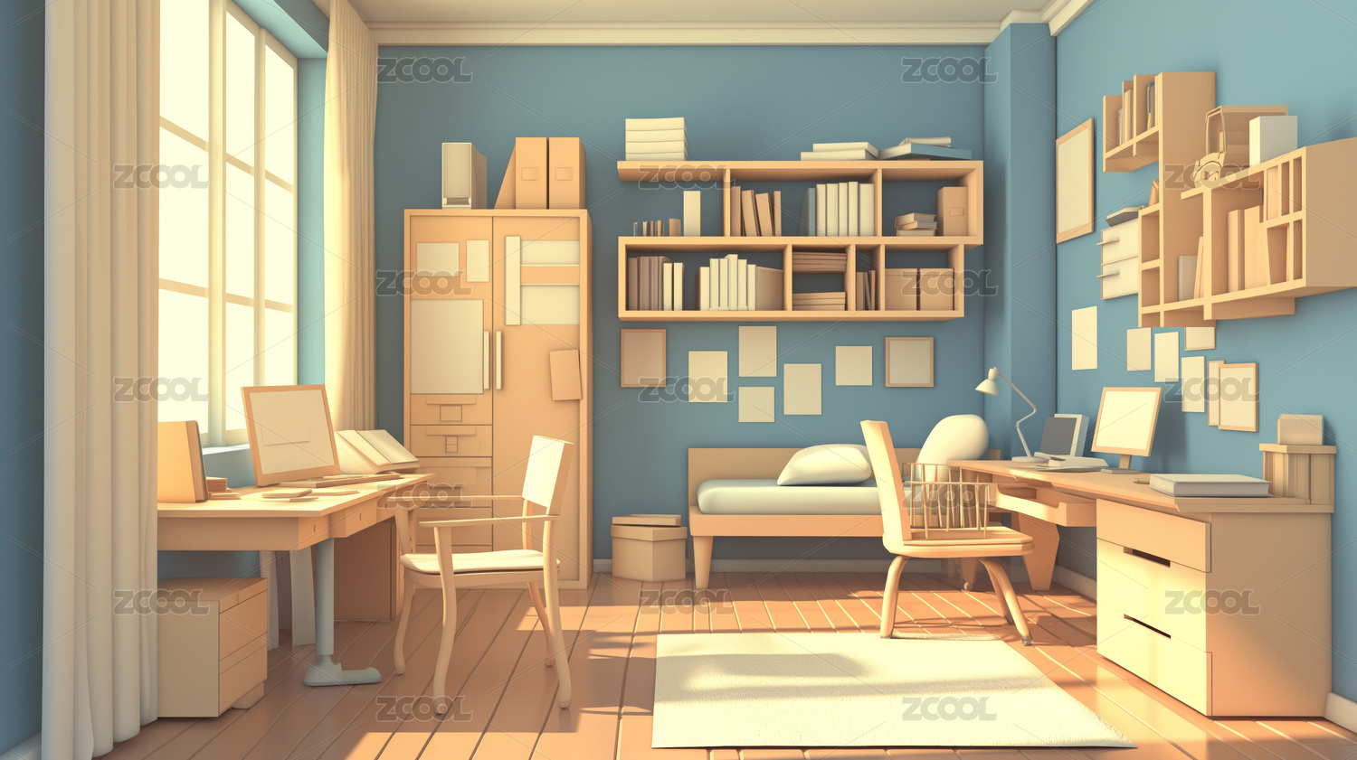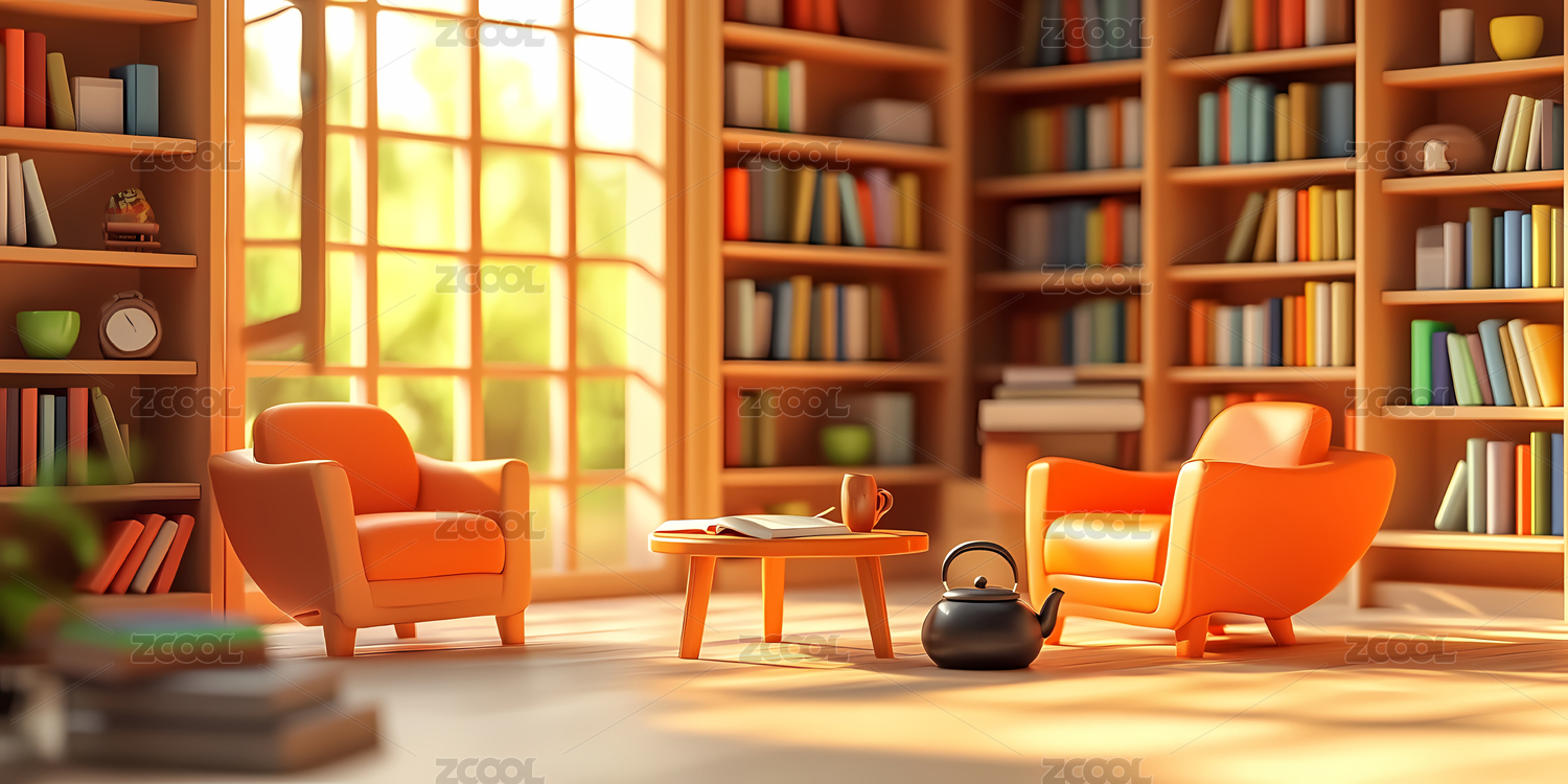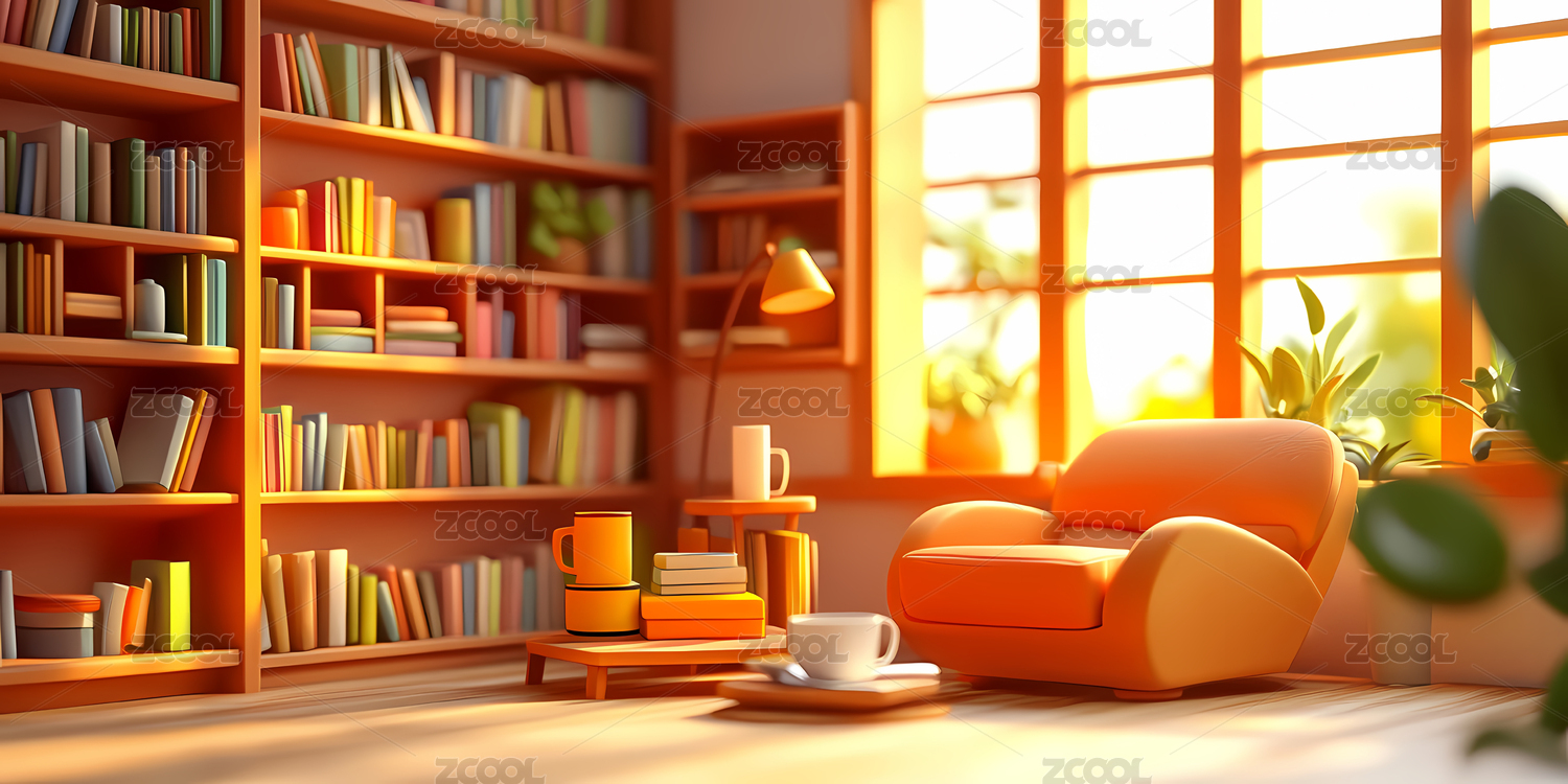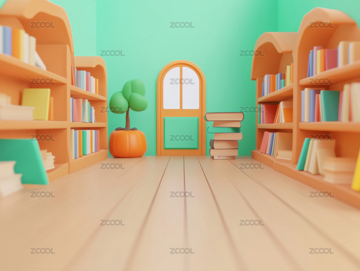 3d,插画,背景,装饰,插图,卡通,书房,书本,书籍,图书