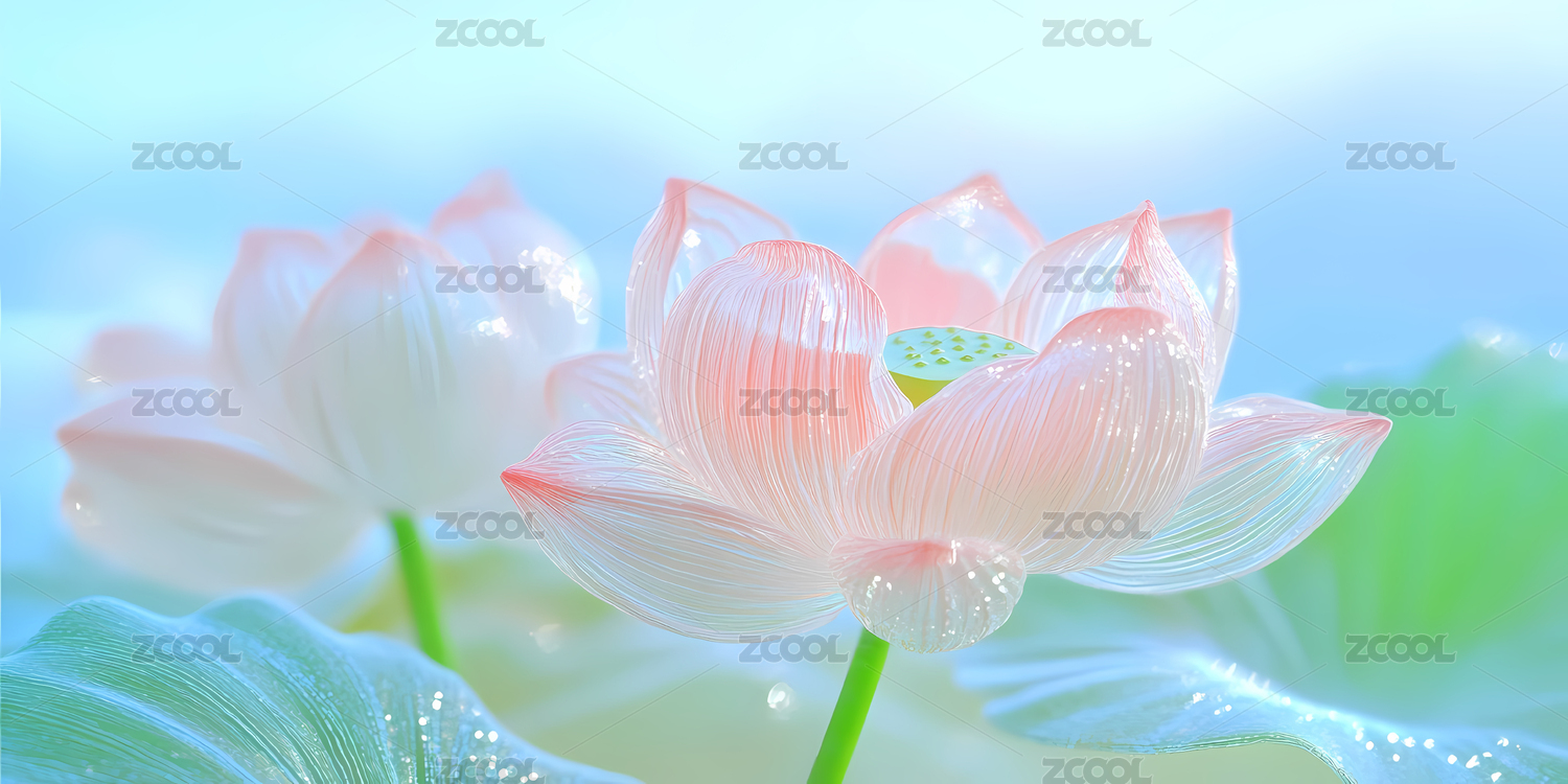 夏天荷花莲花清新自然大暑节气AI数字艺术