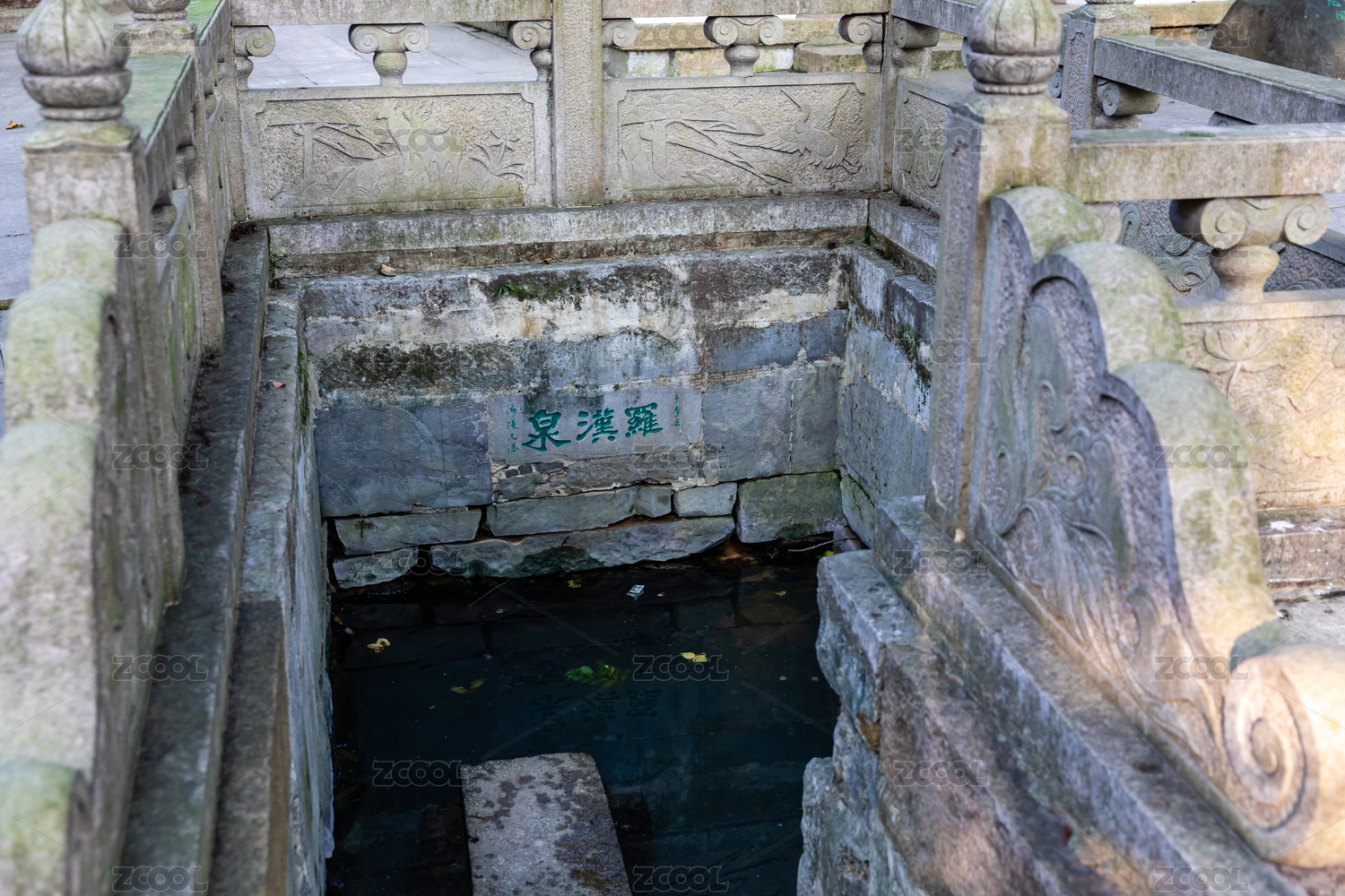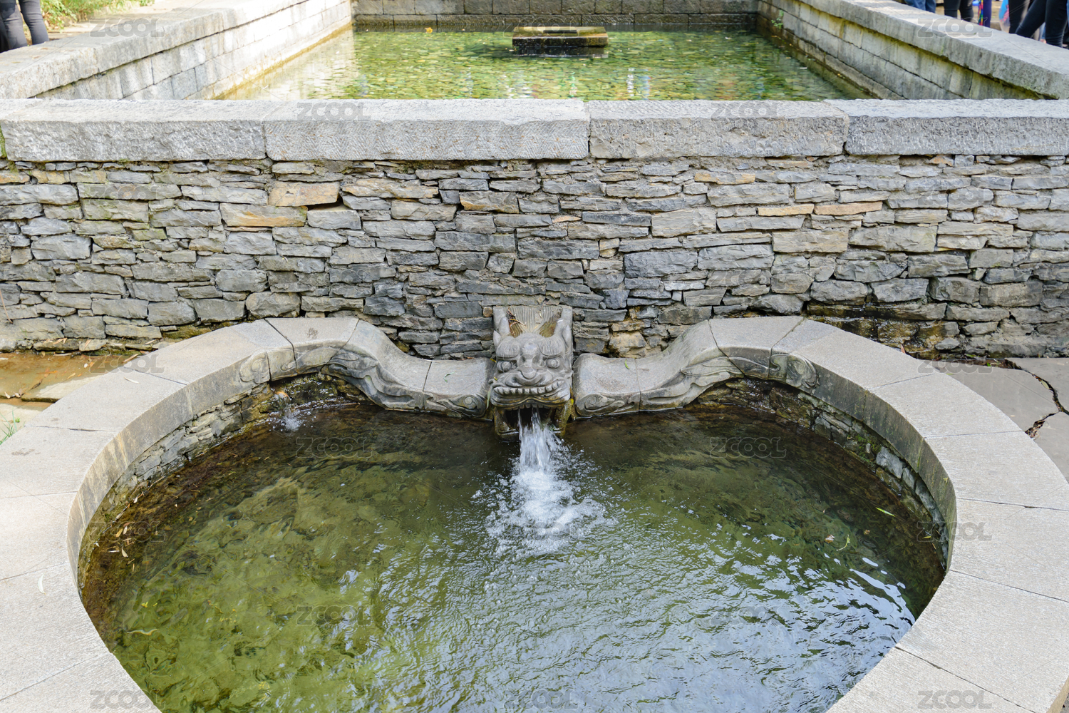 中国浙江省杭州市六和塔内的龙头喷水许愿池